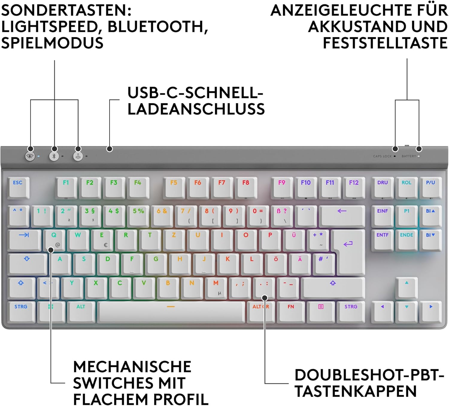 Дизайнът без цифрова клавиатура предлага компактни контроли. Възползвайте се от по-бързо време за реакция с точка на задействане от 1,3 мм.