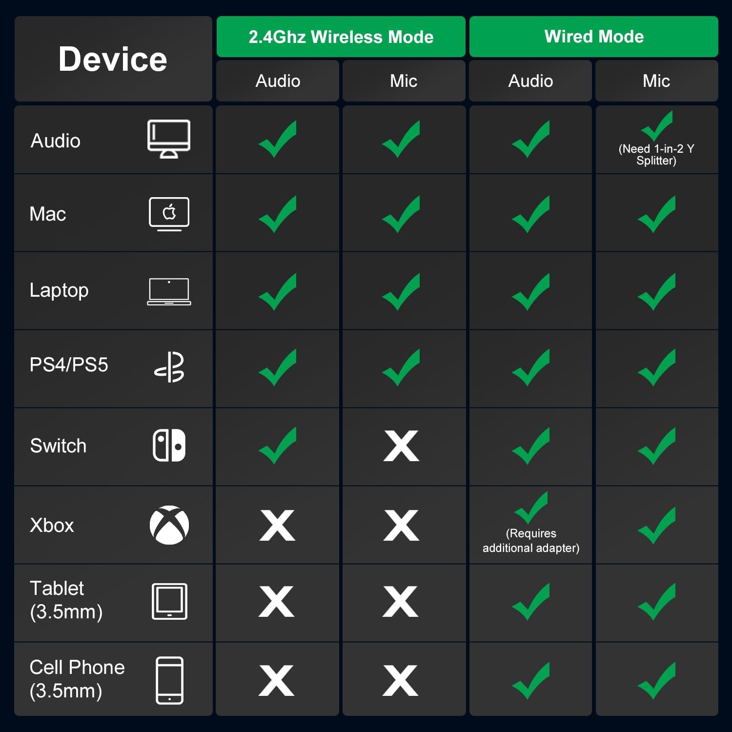 • Забележка: 1. 2 в 1 USB предавателят трябва да се комбинира, за да се свърже с PS5/PS4/PC/лаптоп, не може да се използва отделно. 2. Когато поставяте микрофона, моля, следвайте маркировката за микрофон на тялото. Не го поставяйте случайно в 3,5 мм интерфейсен отвор, тъй като това може да доведе до изключване на слушалките.