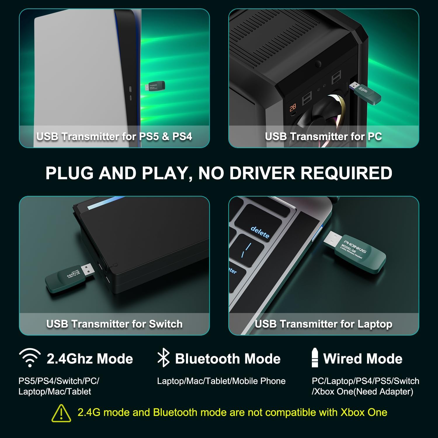• Съвместимост с множество платформи: геймърски слушалки с 2.4GHz USB & Type C двоен адаптер и 3.5mm кабел, нашите геймърски слушалки са съвместими с PS4/PS5/PC/Switch/мобилен телефон. Просто включете устройството си и можете да се насладите на завладяващо и комфортно игрово изживяване по всяко време и навсякъде.