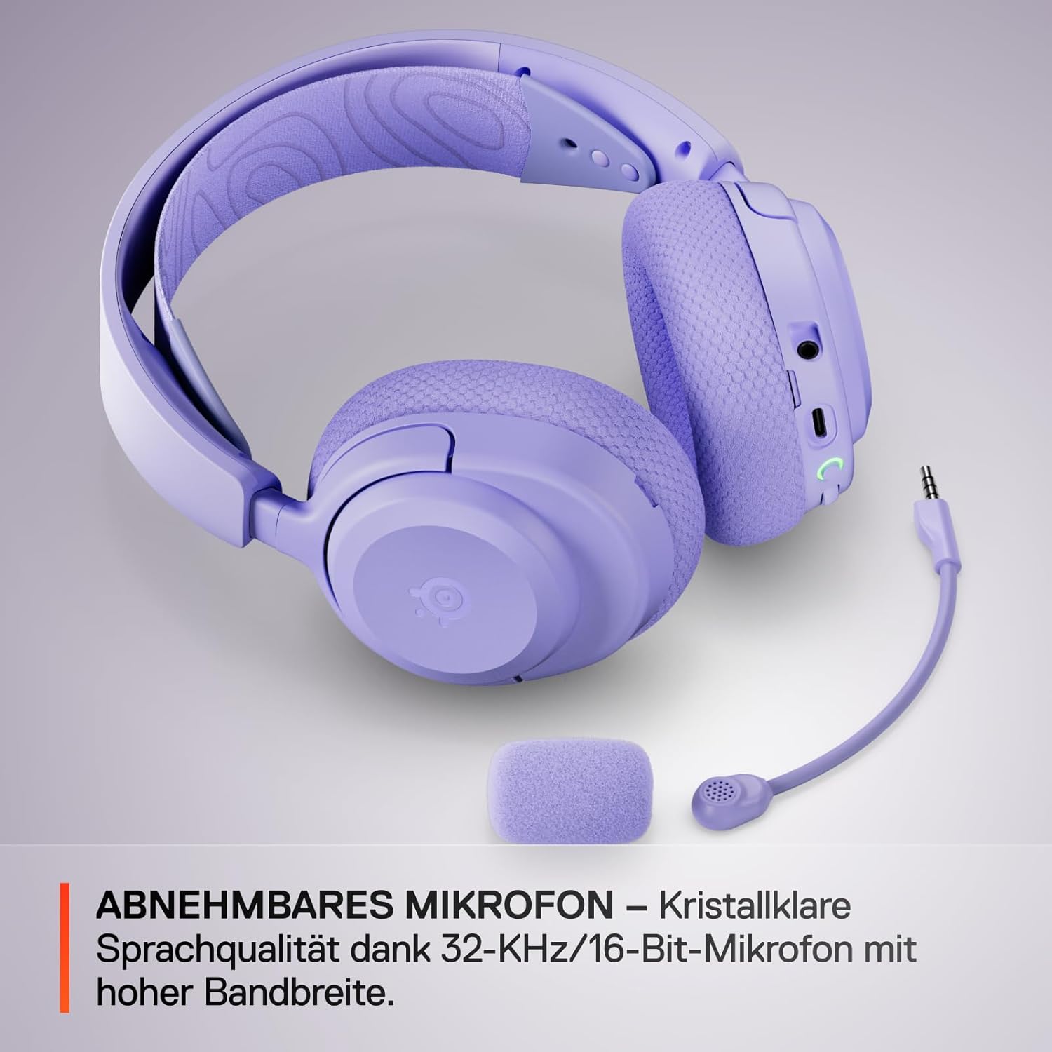 Безжични геймърски слушалки SteelSeries Arctis Nova 3P – Управление чрез приложение – 40-часова батерия – Неодимови магнити – 2.4 GHz/Bluetooth – Свалящ се микрофон – PS5, PS4, PC, Switch, мобилни устройства – Лавандулов цвят