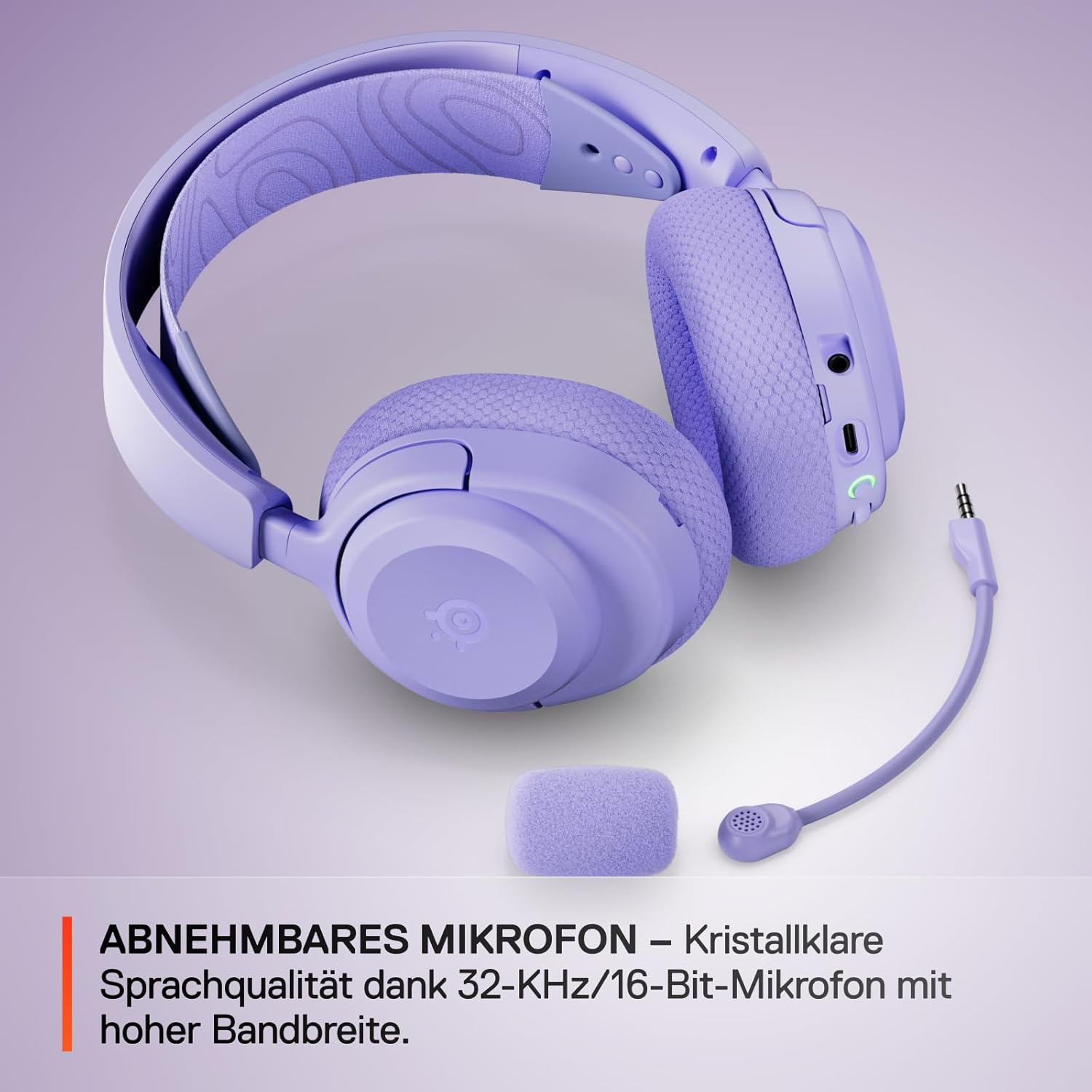 Безжични геймърски слушалки SteelSeries Arctis Nova 3X – Управление чрез приложение – 40-часова батерия – Неодимови магнити – 2.4 GHz/Bluetooth – Свалящ се микрофон – Xbox, PS5, PC, Switch, мобилни устройства – Лавандулово