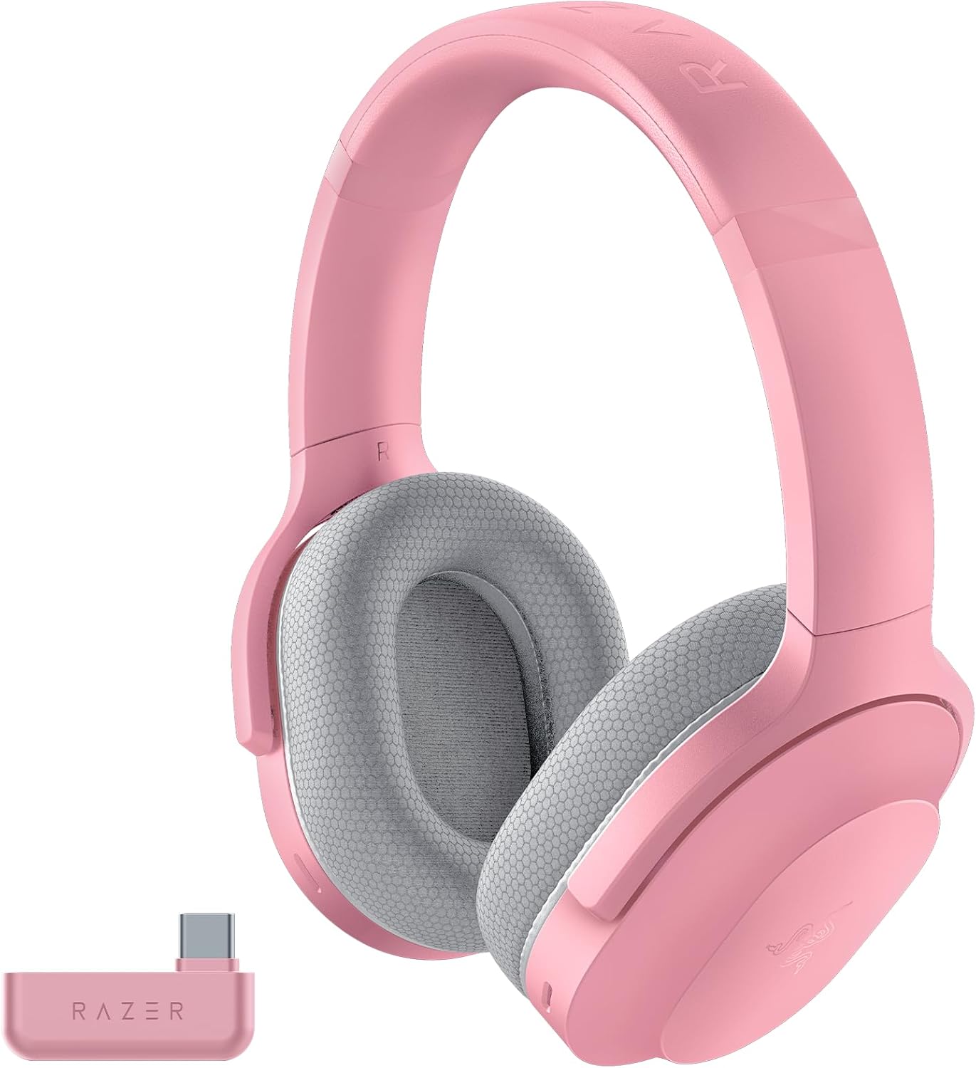 Безжични мултиплатформени слушалки Razer Barracuda X за игри и мобилни устройства (SmartSwitch Dual Wireless, TriForce 40 мм, кардиоиден микрофон, 50 часа батерия, USB-C), кварцово розови