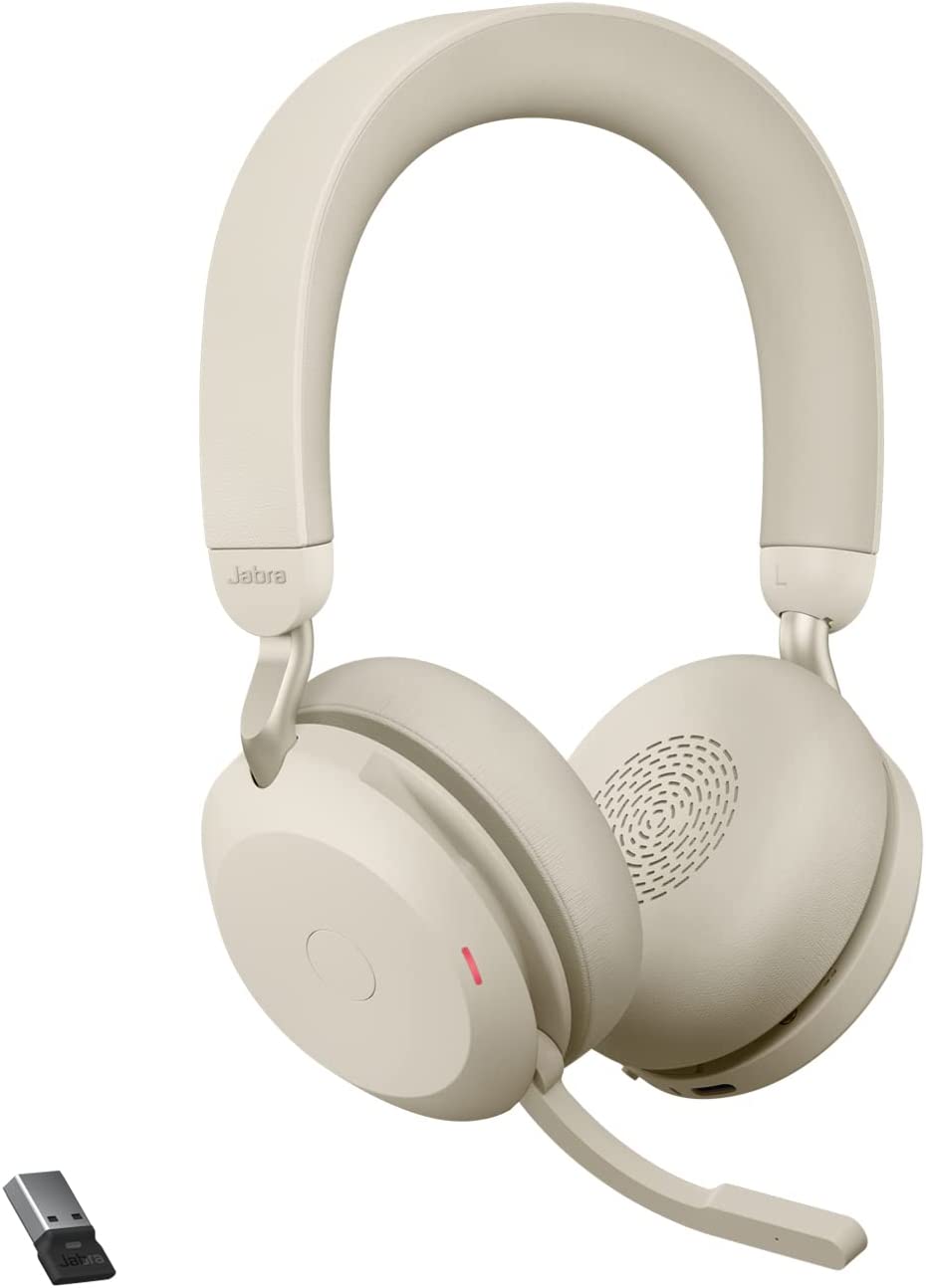 Безжични слушалки Jabra Evolve2 75, С технология за 8 микрофона, Активно шумопотискане, USB-A Bluetooth адаптер, Бежови