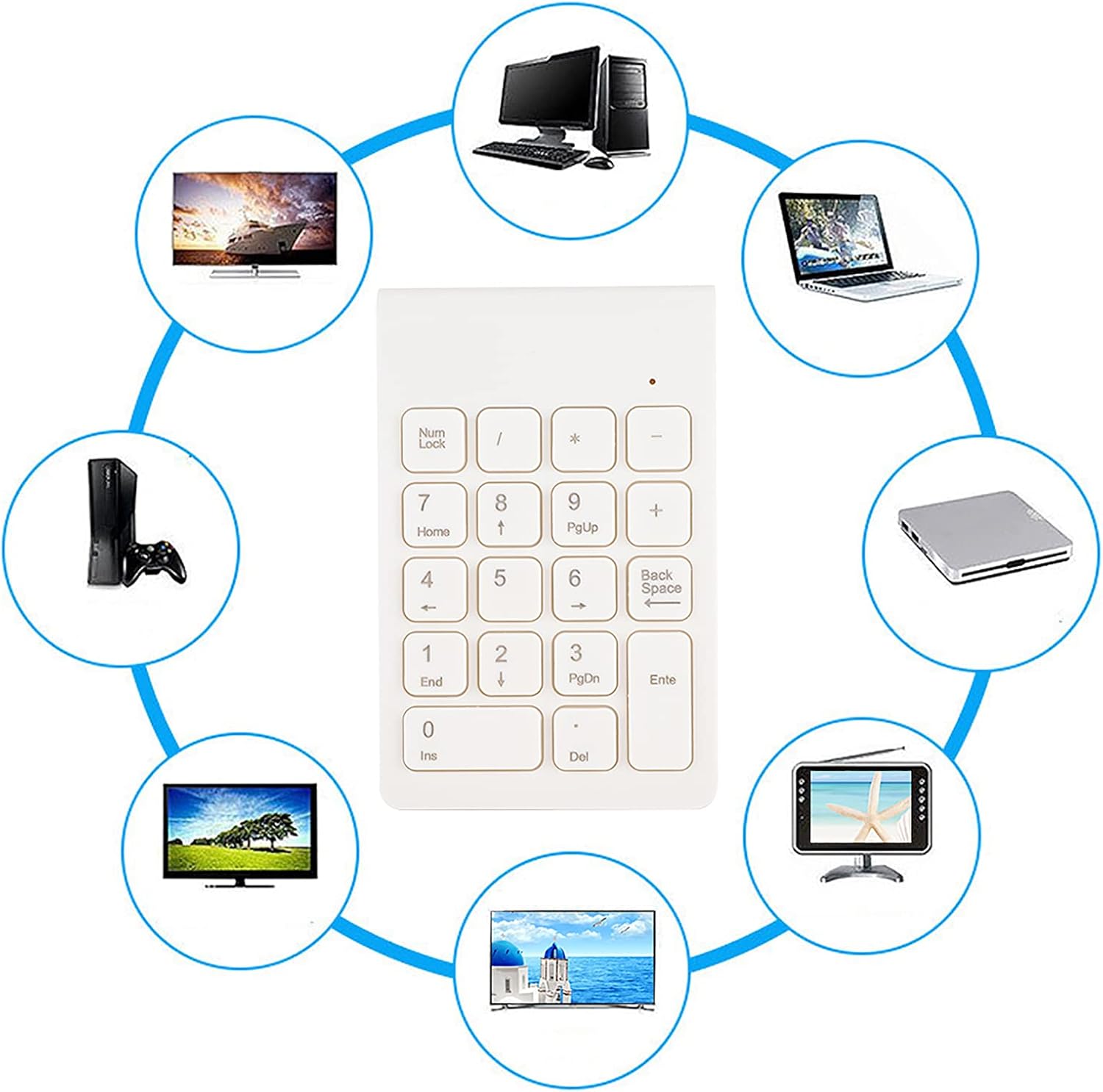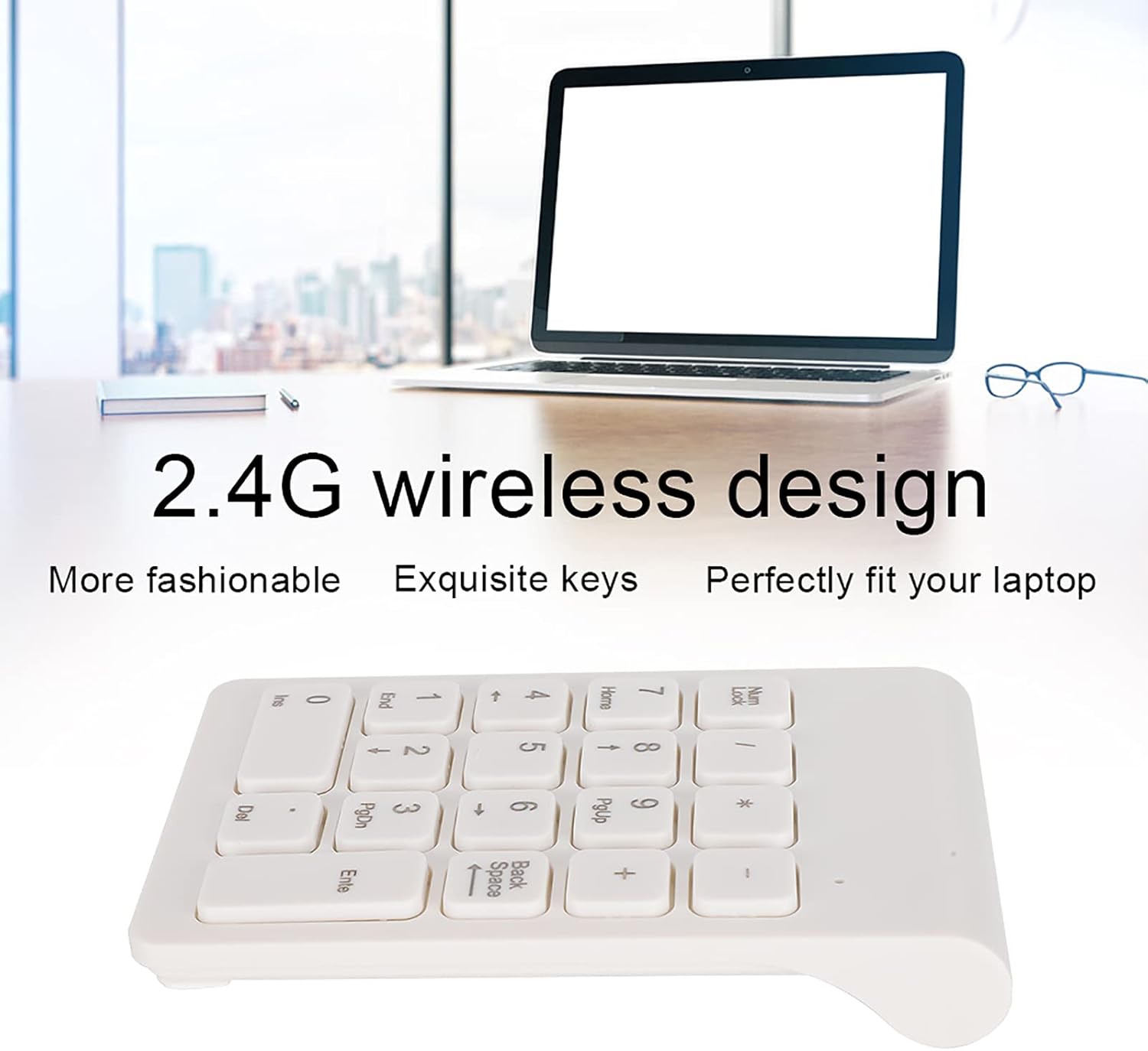 Безжични цифрови клавиатури, ергономична цифрова клавиатура, 18 клавиша, преносима 2.4GHz USB финансово-счетоводна цифрова клавиатура за лаптоп, настолен компютър (бяла)