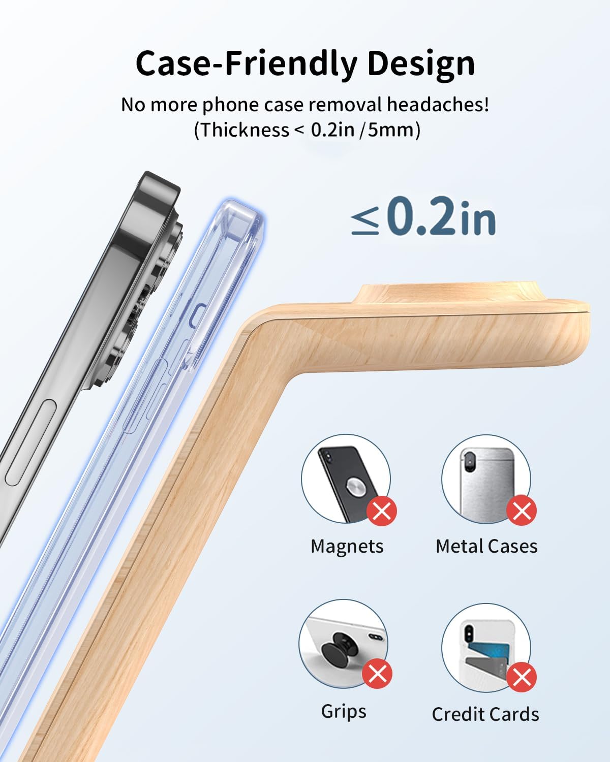 You can use your iPhone while it is charging. Easily charge your iPhone in portrait or landscape mode for a comfortable viewing angle. So you can easily have a video chat, check messages or track the latest shows. This wireless charger fits well in your bedroom, study, hallway, office desk and much more.