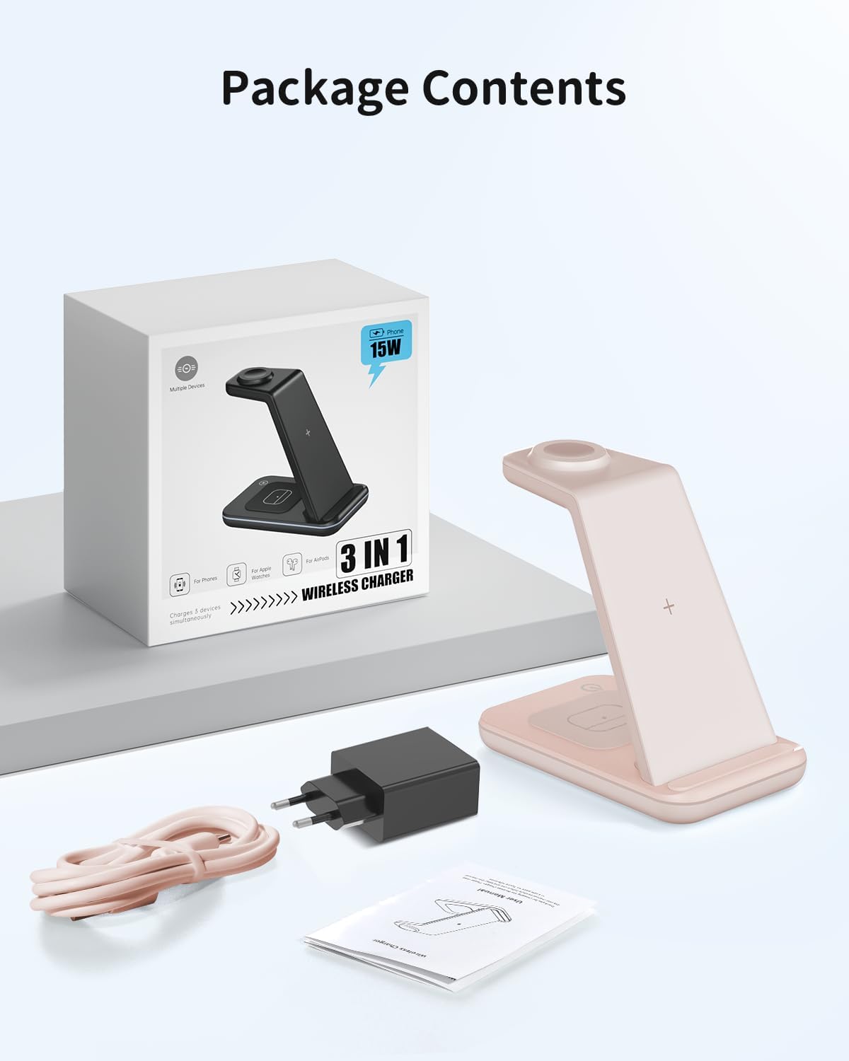 Търсите ли удобно и високоефективно зарядно устройство, с което да зареждате едновременно вашия iPhone, Apple Watch и Airpods? Не търсете повече от зарядната станция Geekera 3-в-1 на Apple. Тя е преминала официалното WPC оторизиране чрез споразумение за безжично зареждане QI и ви предлага висококачествено безжично зареждане (Забележка: Qi регистрационният идентификатор е 12220).