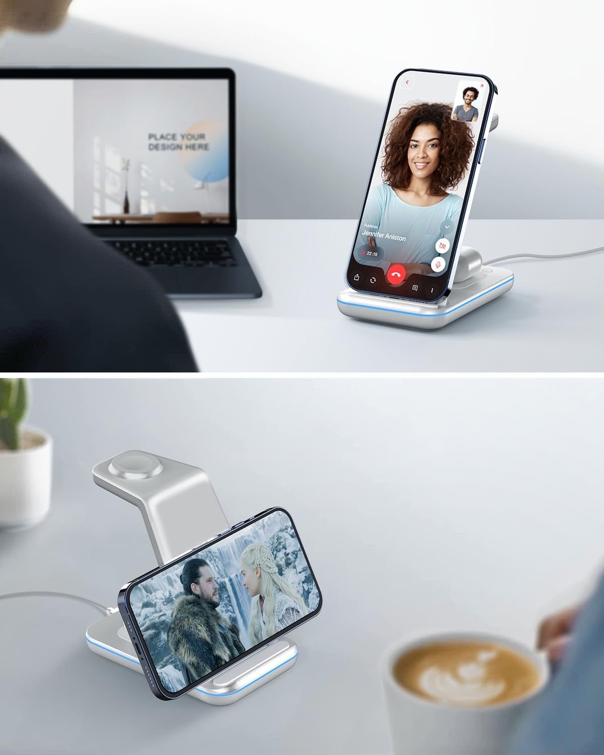 The Apple Watch and iPhone charging station has been specially designed with an ideal viewing angle of 60° and offers you a comfortable viewing experience, whether you are sitting or standing. It is ideal for watching videos and movies, making calls, etc.