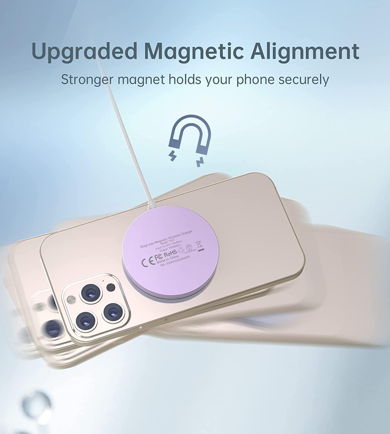 Improved wireless magnetic charger that is more sensitive and sucks stronger. Locks your iPhone 12 magnetically to ensure perfect alignment and strong hold for stable and efficient charging.