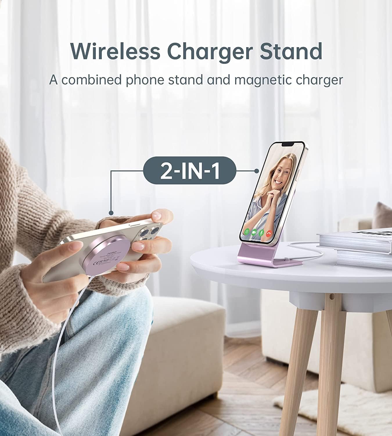 2. Зарядната стойка е съвместима само с нашето персонализирано магнитно безжично зарядно (***Не е за оригинално зарядно устройство Apple Mag-Safe или други марки***)