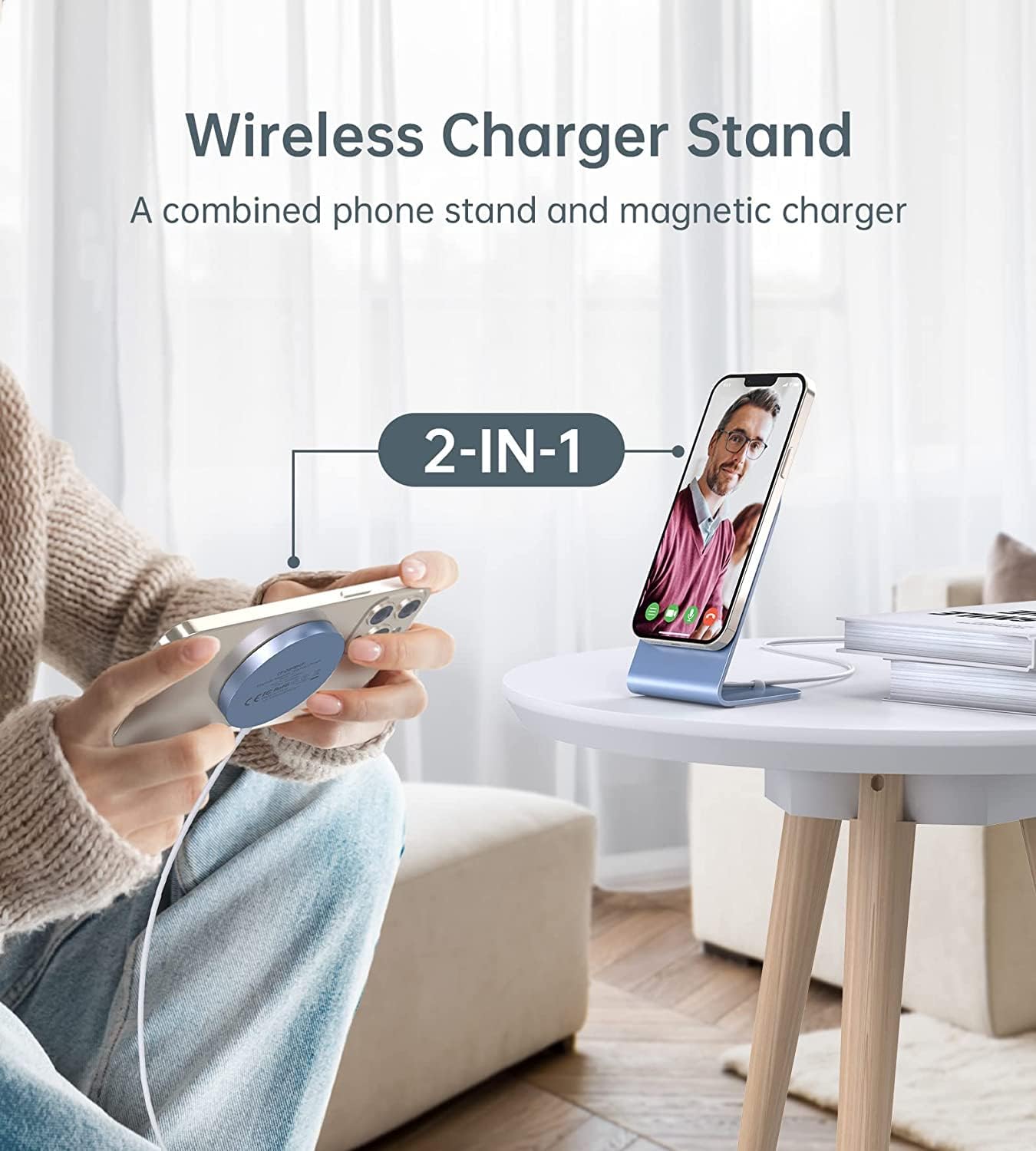 2. Зарядната стойка е съвместима само с нашето персонализирано магнитно безжично зарядно (***Не е за оригинално зарядно устройство Apple Mag-Safe или други марки***)