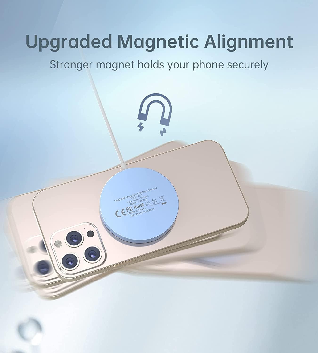 Improved wireless magnetic charger that is more sensitive and sucks stronger. Locks your iPhone 12 magnetically to ensure perfect alignment and strong hold for stable and efficient charging.