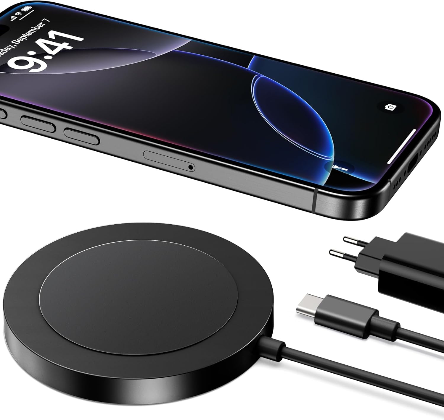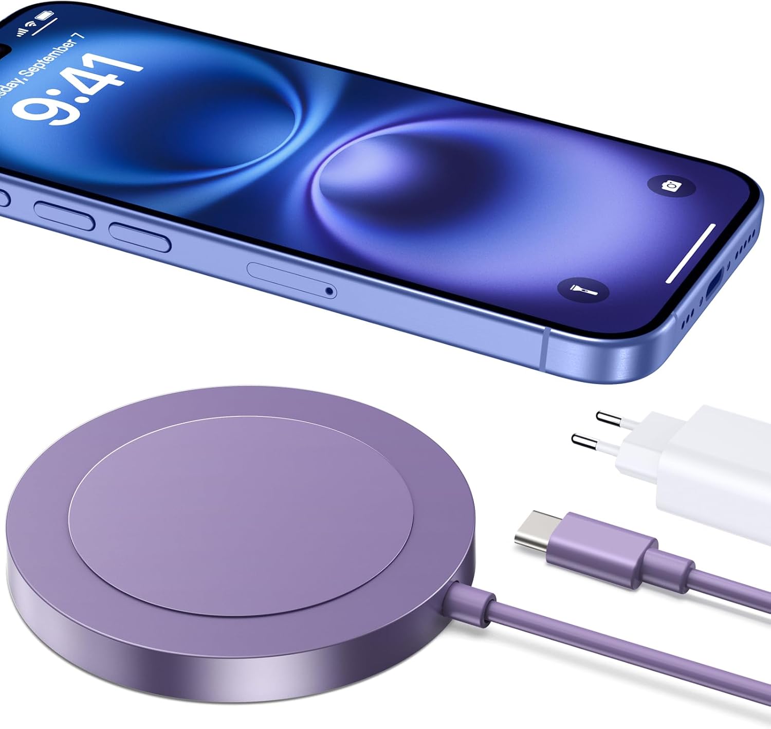 • Широка съвместимост Новото зарядно Mag-Safe е съвместимо с iPhone 17 16 15 14 13 12, за iPhone 17 16 15 14 13 12 Pro, за iPhone 17 16 15 14 13 12 Pro Max, за iPhone Air, за iPhone 16 15 14 Plus, за iPhone 12 14 3 Mini и Air Pods 4 3 2 Pro; магнитното безжично зарядно се предлага с допълнителен 1,2-метров кабел, който може значително да разшири свободата ви на движение.