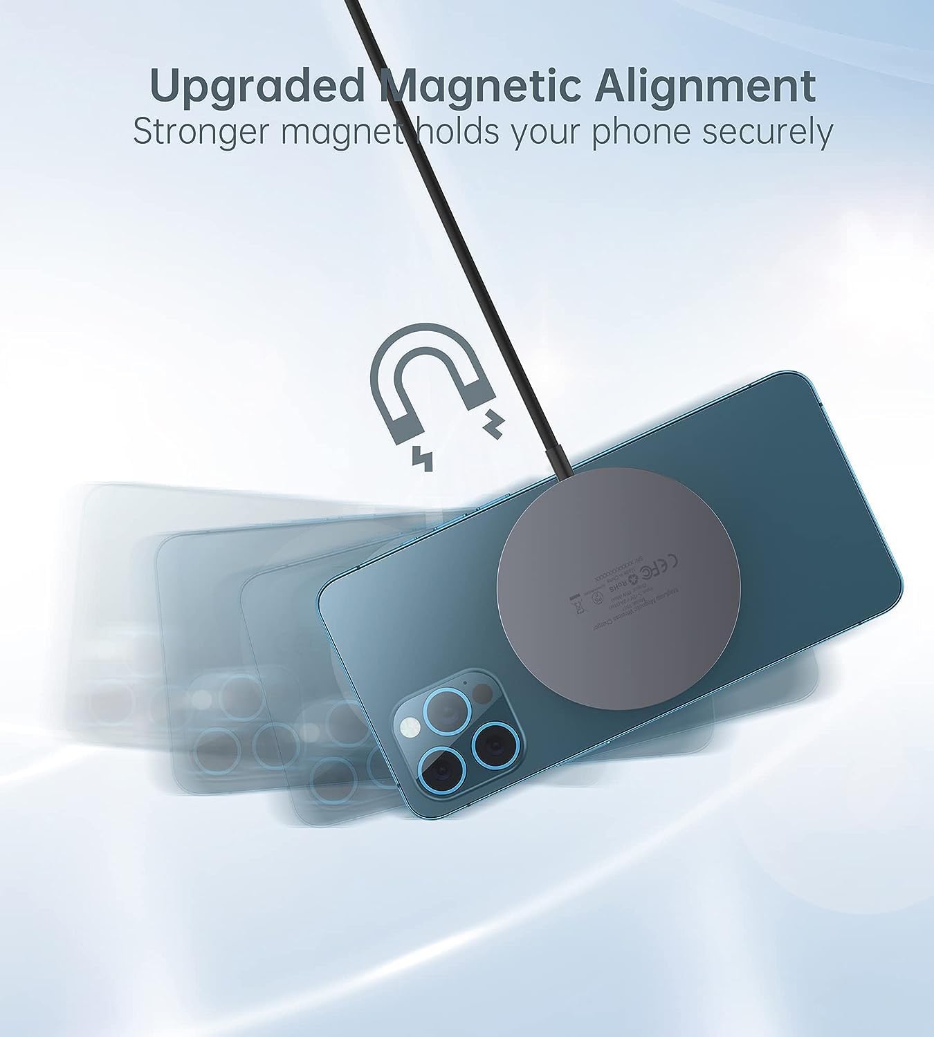 Improved wireless magnetic charger that is more sensitive and sucks stronger. Locks your iPhone 12 magnetically to ensure perfect alignment and strong hold for stable and efficient charging.