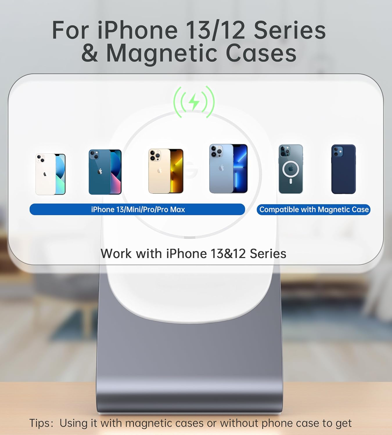 2. Зарядната стойка е съвместима само с нашето персонализирано магнитно безжично зарядно (***Не е за оригинално зарядно устройство Apple Mag-Safe или други марки***)