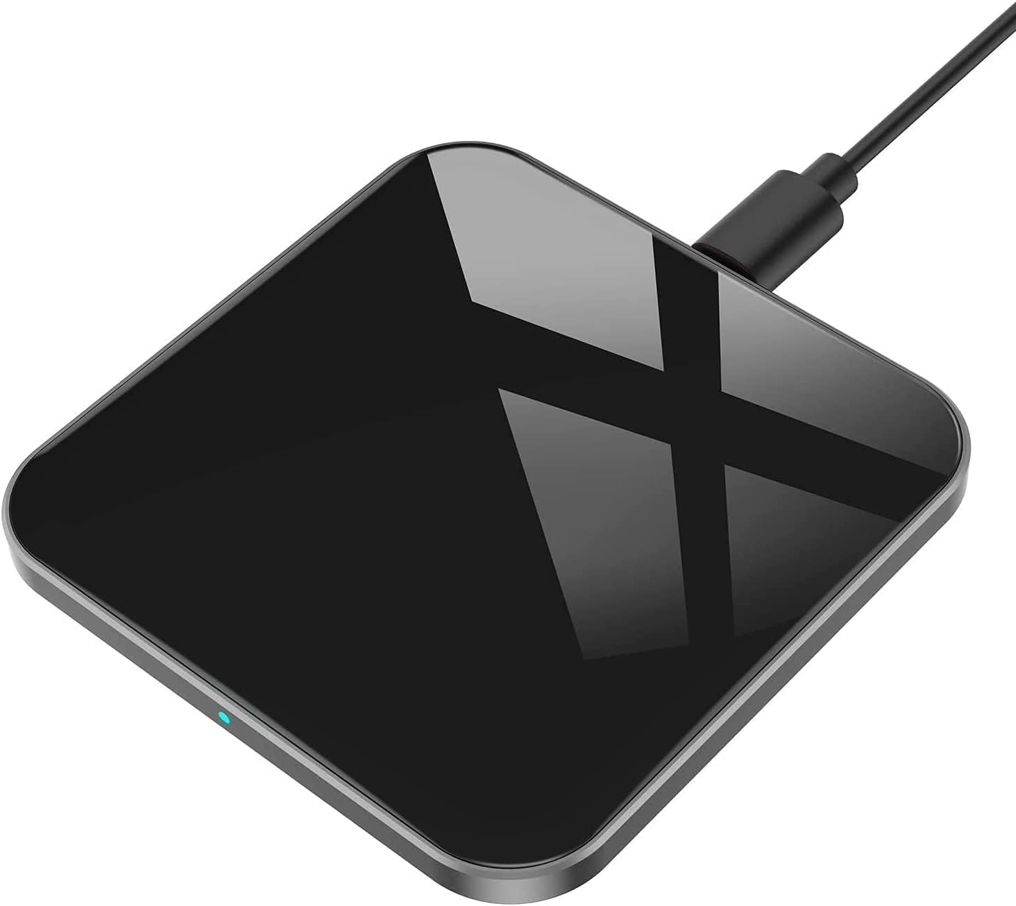 • Елегантен дизайн и професионализъм: Тъй като няма вентилатор, работи безшумно. С дебелина от 6 мм, това е перфектно преносима ултратънка зарядна подложка за дома и офиса, много спестяваща място, която ще поддържа вашия работен плот, бюро и нощно шкафче подредени и организирани. Повърхността, изработена от стъкло и алуминий, прави това безжично зарядно устройство страхотно и елегантно. Практичен подарък за празненства и рождени дни.