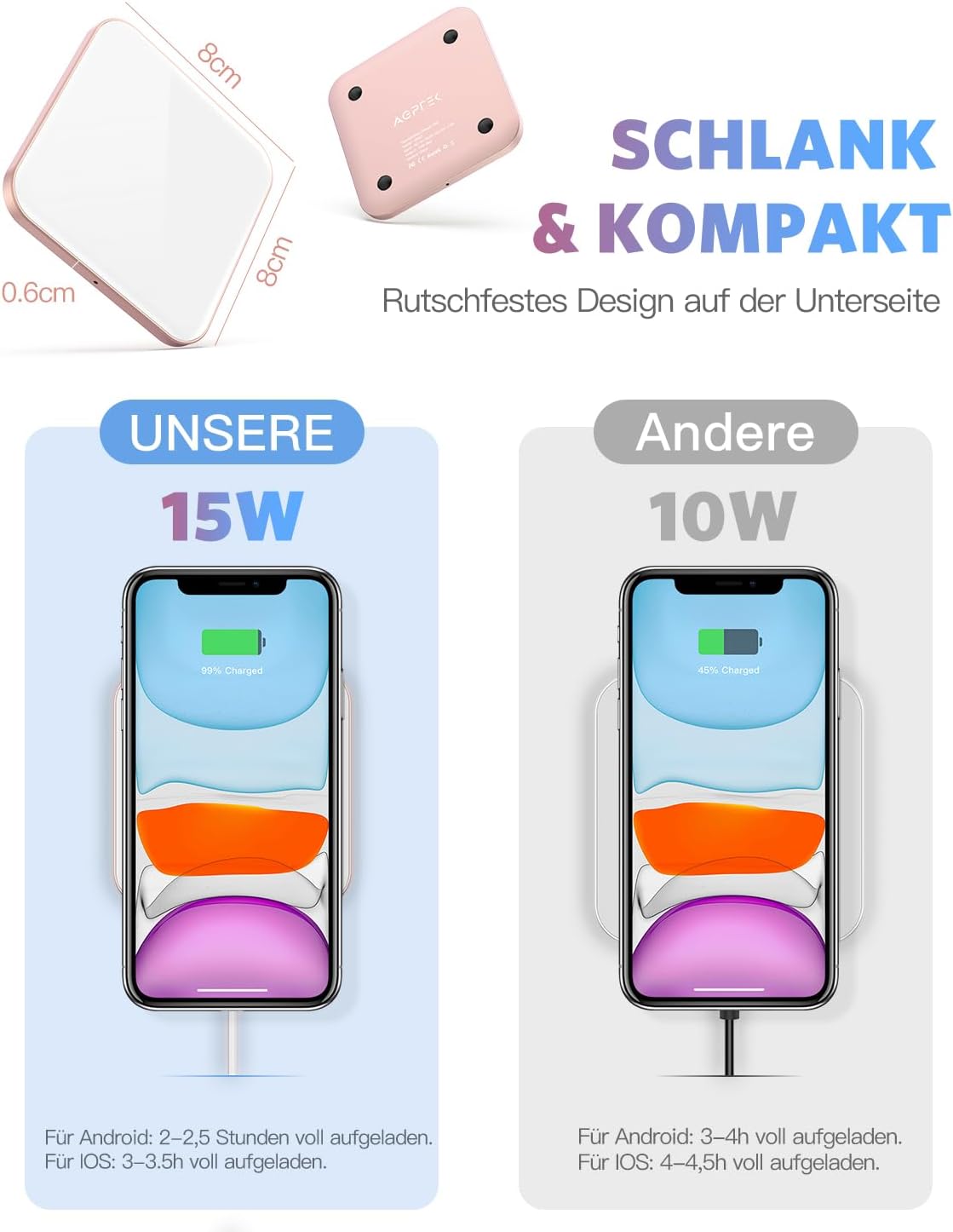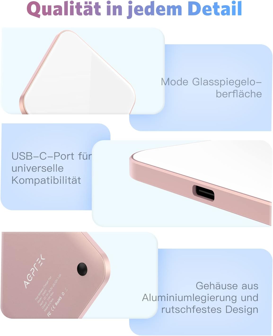 Безжично зарядно устройство AGPTEK 15W, Индуктивна станция за зареждане на мобилен телефон [Type C], Qi безжична станция за зареждане за iPhone