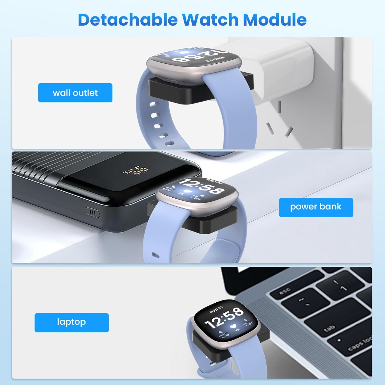 Безжично зарядно за Fitbit Watch, JoyGeek 3 в 1 зарядна станция за Fitbit Versa 4/Versa 3/Sense 2/Sense, MagSafe зарядна стойка за iPhone 16/15/14/13/12 серия, за AirPods 4/3/2