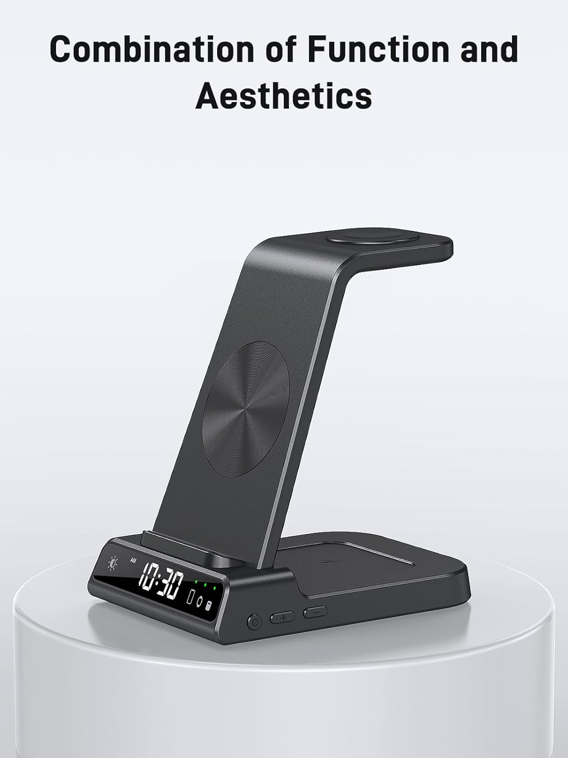 • Безопасна и ефикасна безжична зарядна станция - Това безжично зарядно устройство е изработено от огнеупорен ABS материал и предлага разнообразни защитни функции за вашите устройства. Функции като откриване на обекти, контрол на температурата, защита от пренапрежение и внимателно проектираните отвори за разсейване на топлината на гърба предотвратяват прегряване по време на зареждане.