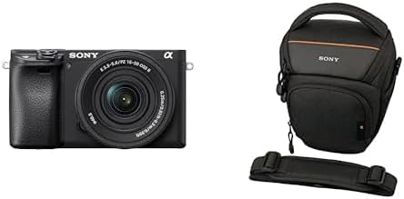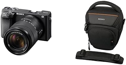 Безогледален фотоапарат Sony Alpha 6400 APS-C (бърз 0.02s автофокус с разпознаване на очи за хора и животни, 4K видео и накланящ се дисплей за влогове) + чанта