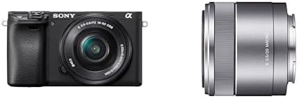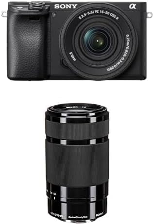 Безогледален фотоапарат Sony Alpha 6400 APS-C с обектив 16-50 мм (бърз автофокус от 0.02 секунди с разпознаване на очи, 4K видео и накланящ се дисплей за влогване) + чанта