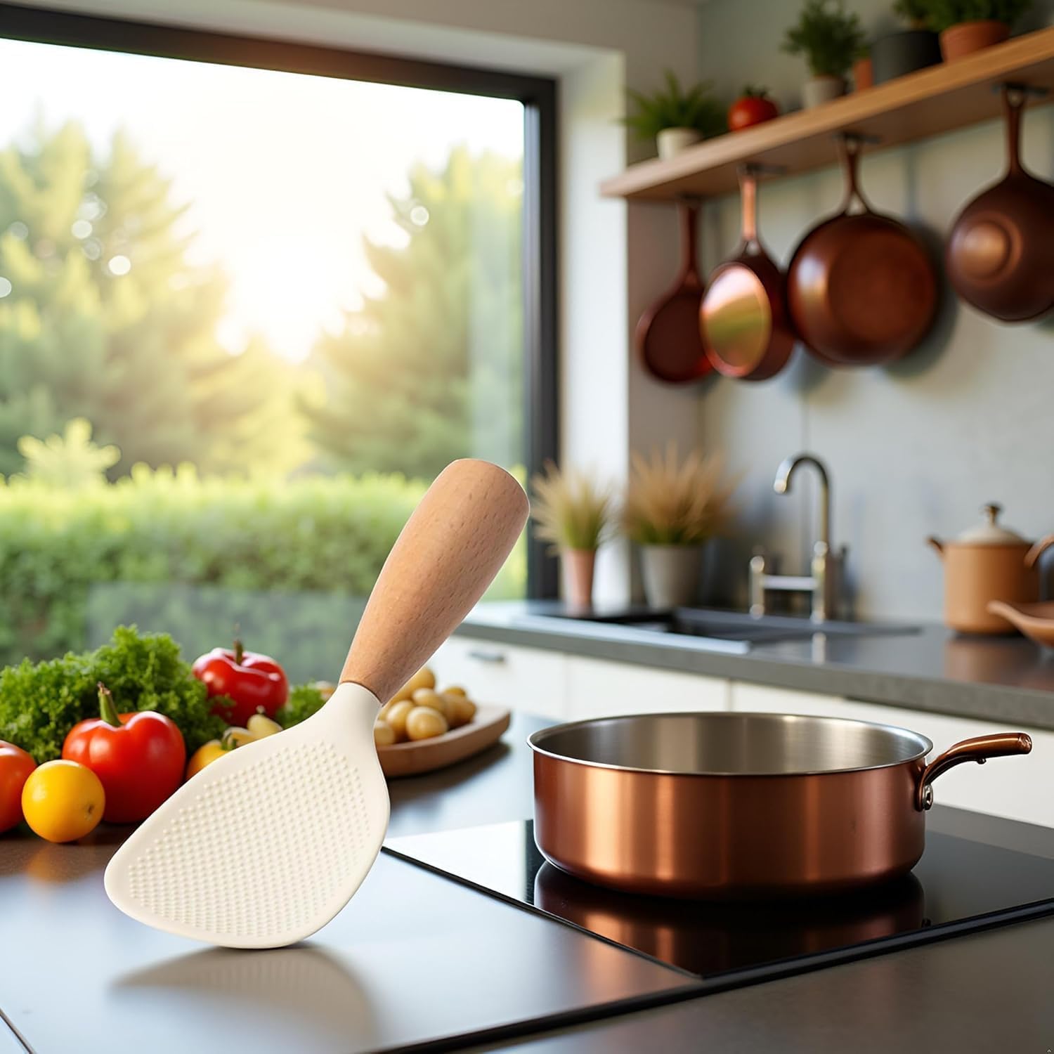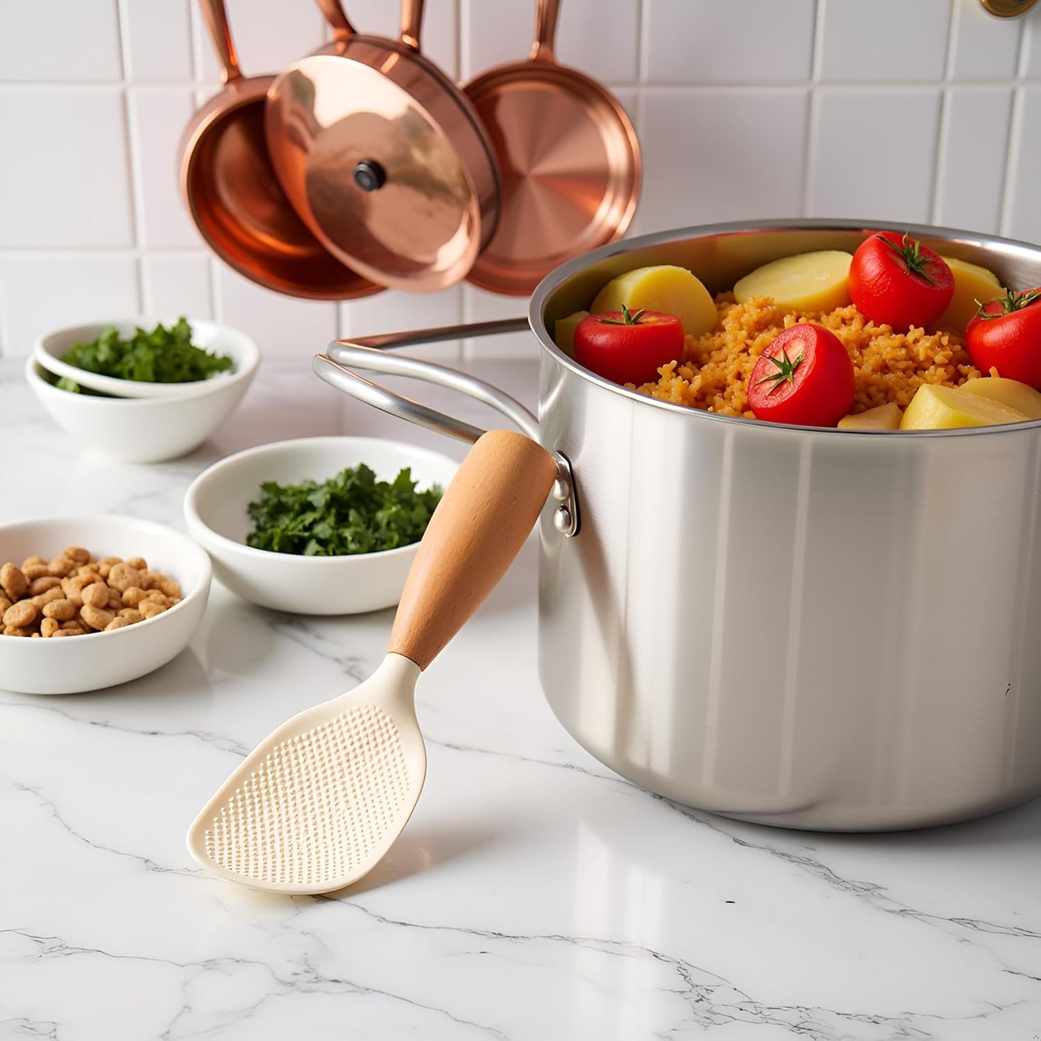 • Универсална употреба: Идеална за сервиране на ориз, картофи и други ястия с удобна дръжка и лесно загребване.