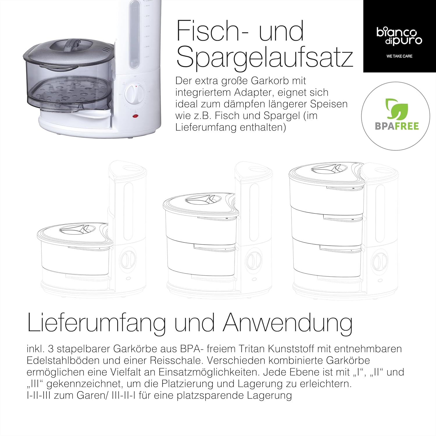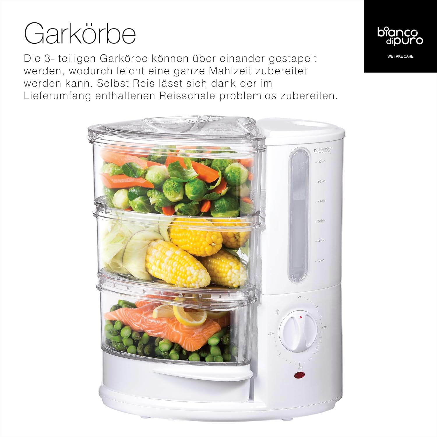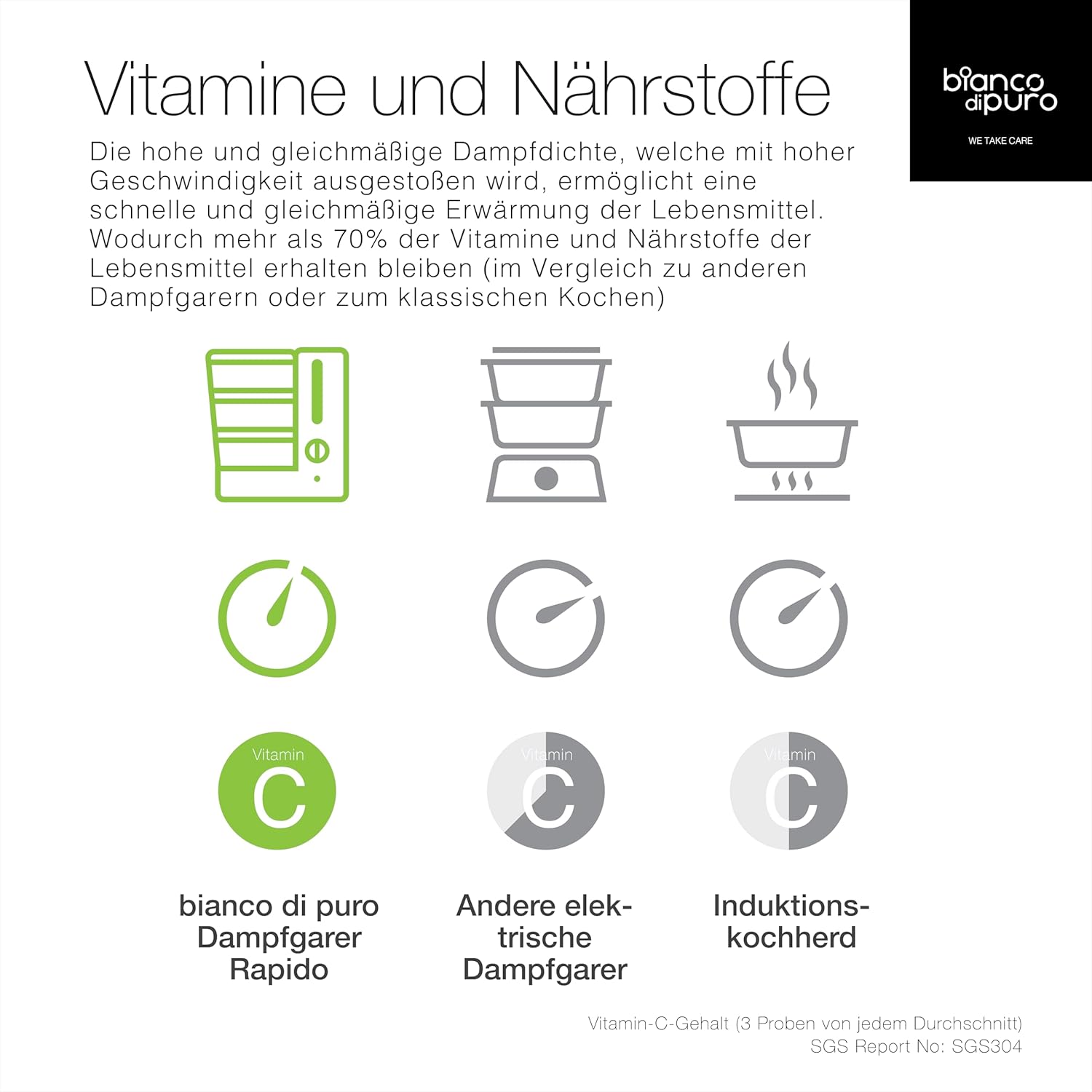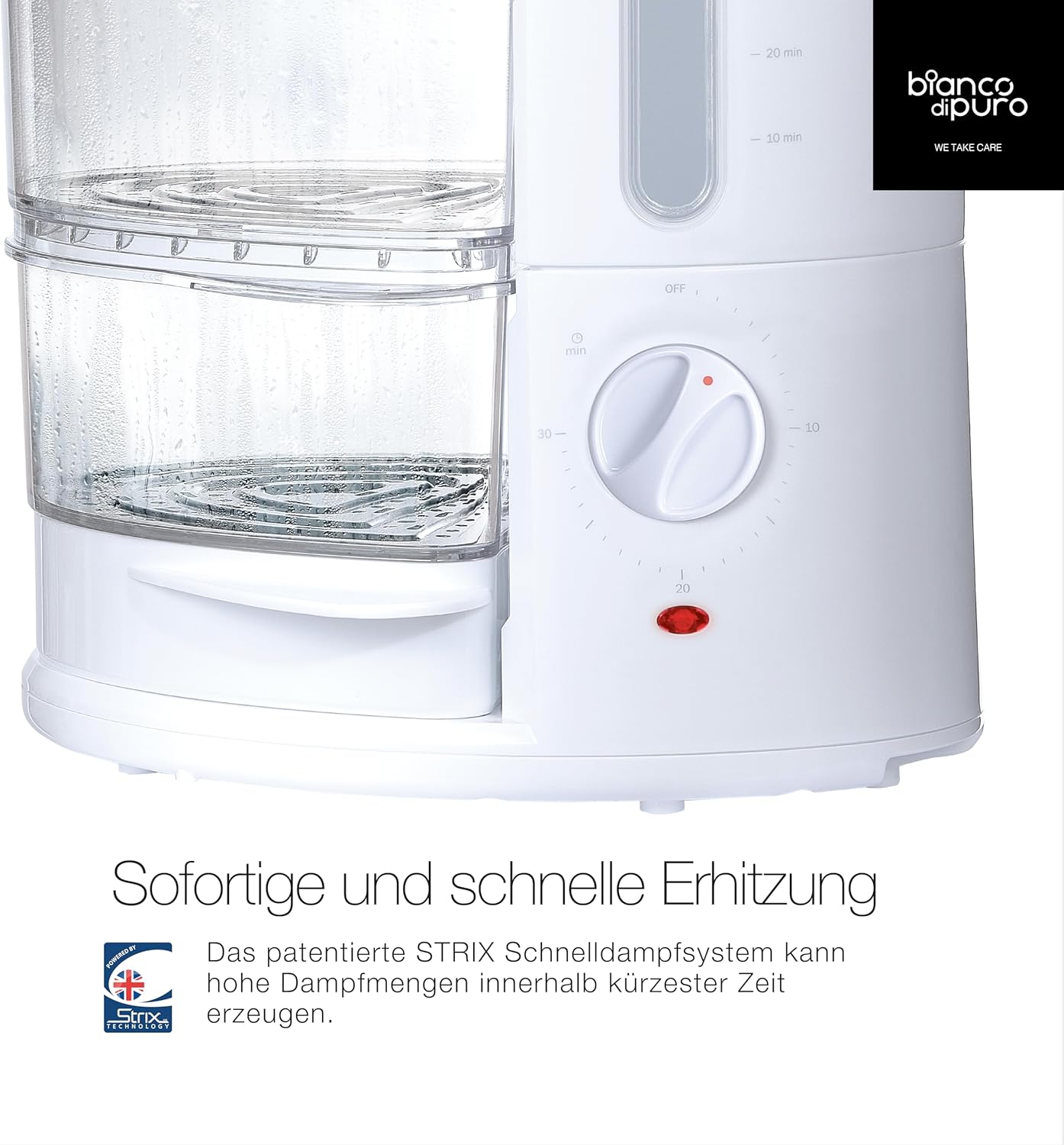 bianco di puro® Rapido Steamer - 50% по-бърз от други системи благодарение на STRIX Steam Technology с основи от неръждаема стомана - Без BPA - 30-минутен таймер с автоматично спиране - 9 л променлив обем за готвене