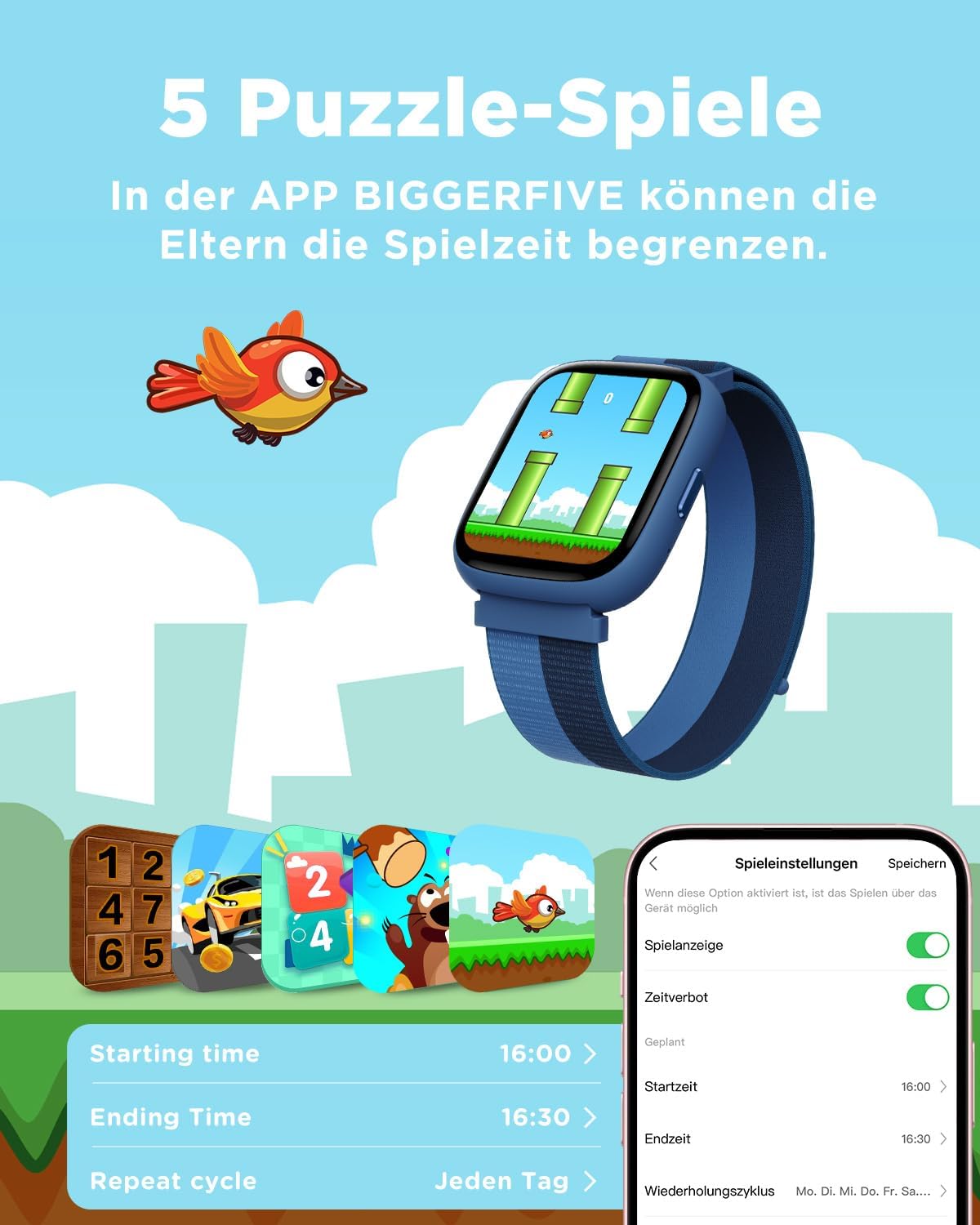 • Насърчава здравословни навици и е перфектна идея за подарък: детският смарт часовник BIGGERFIVE мотивира децата да развият добри навици за упражнения и да останат по-здрави. Идеален за подарък за рождени дни, Коледа и други специални поводи.