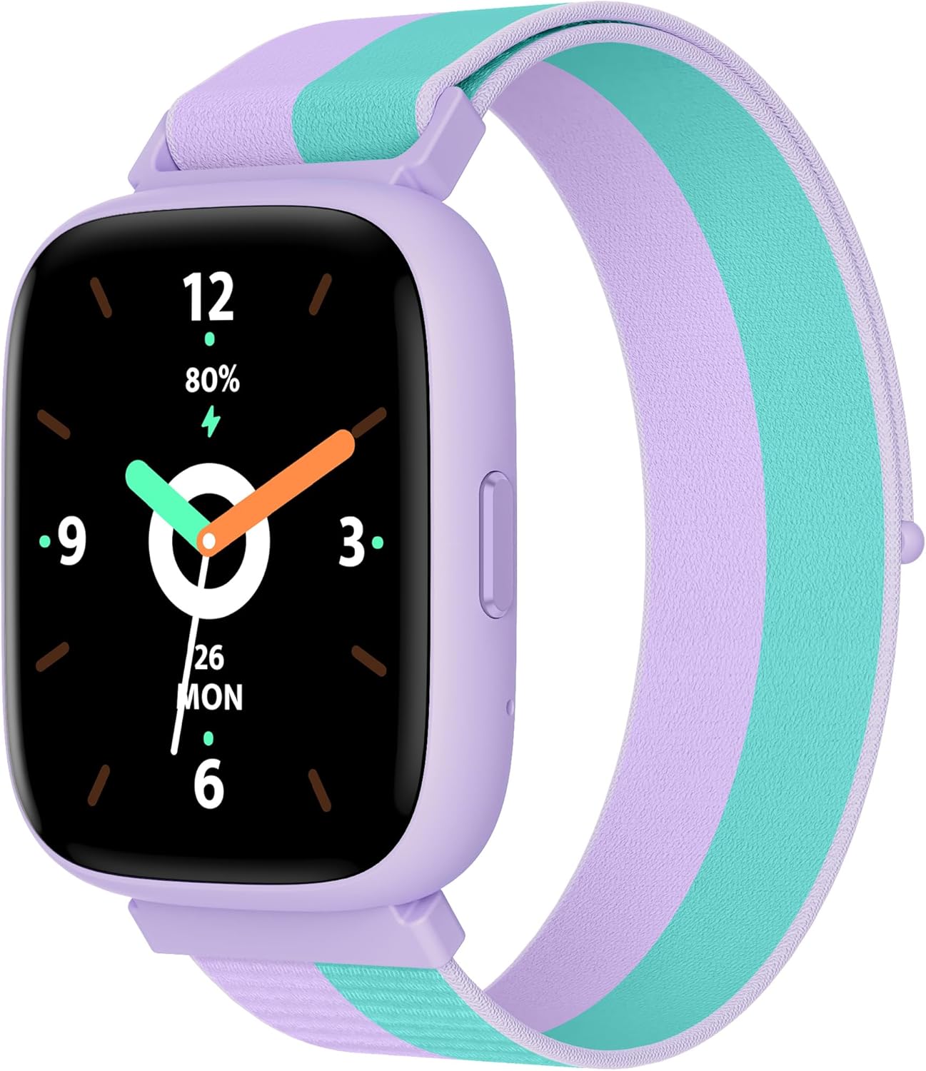 BIGGERFIVE Смарт часовник за деца, 1.8 инча фитнес часовник с крачкомер, 24/7 пулс, водоустойчивост IP68, монитор за сън, будилник, 5 пъзел игри със/без приложение, фитнес тракер за момичета тийнейджъри 5-16 години, найлон