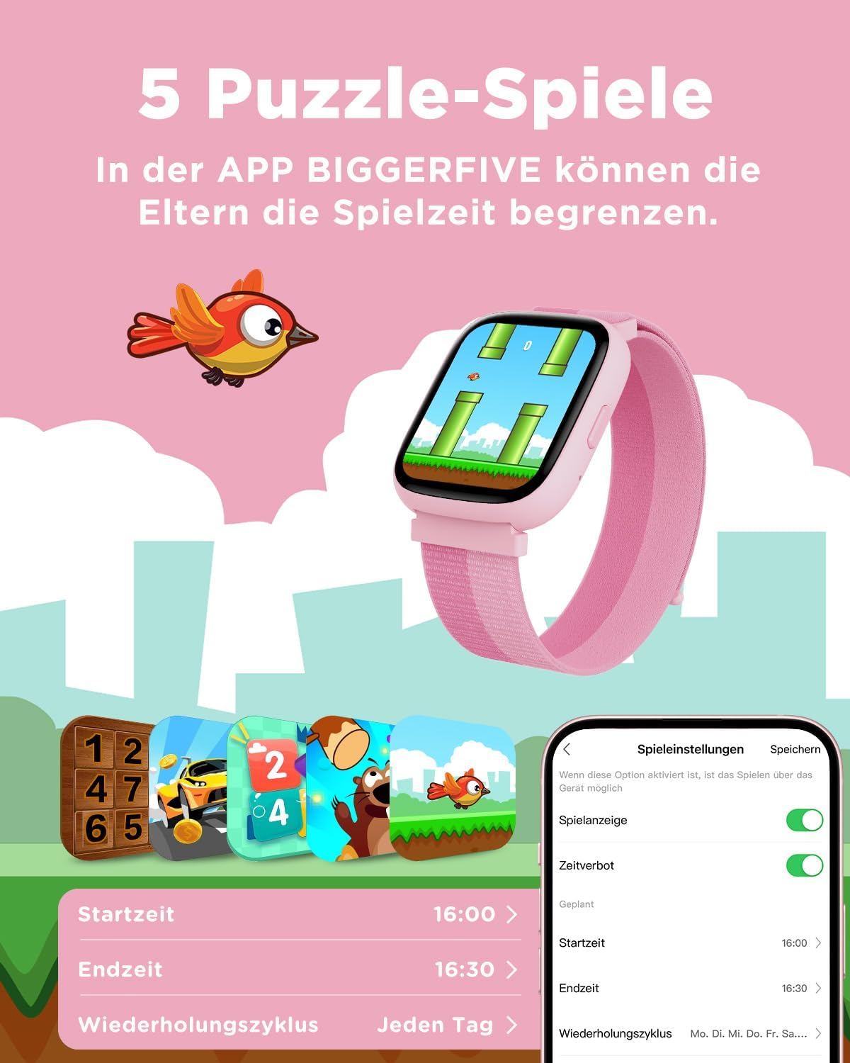 • Насърчава здравословни навици и е перфектна идея за подарък: детският смарт часовник BIGGERFIVE мотивира децата да развият добри навици за упражнения и да останат по-здрави. Идеален за подарък за рождени дни, Коледа и други специални поводи.