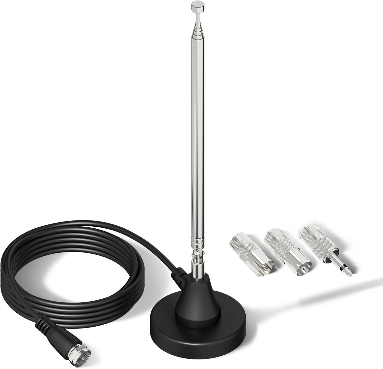 Bingfu DAB+ FM радио антена, цифрова телескопична антена за вътрешна употреба с магнитна основа, 3 м удължителен кабел за 75 ома DAB FM радио тунер, стерео приемник, AV HiFi приемник