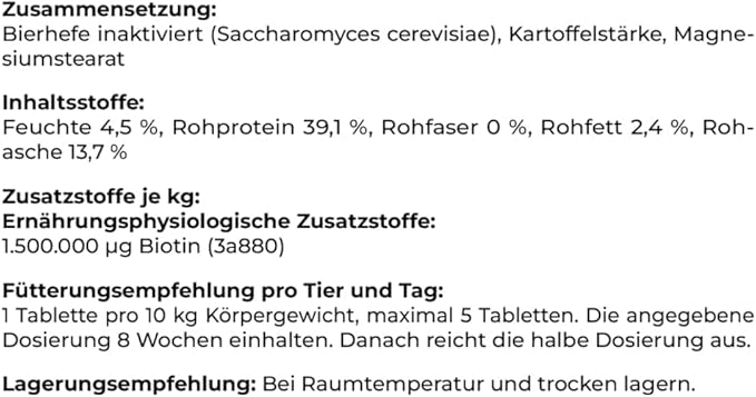 1 таблетка на 10 кг телесно тегло (макс. 5 таблетки), поддържайте дозата в продължение на 8 седмици, след което намалете наполовина.