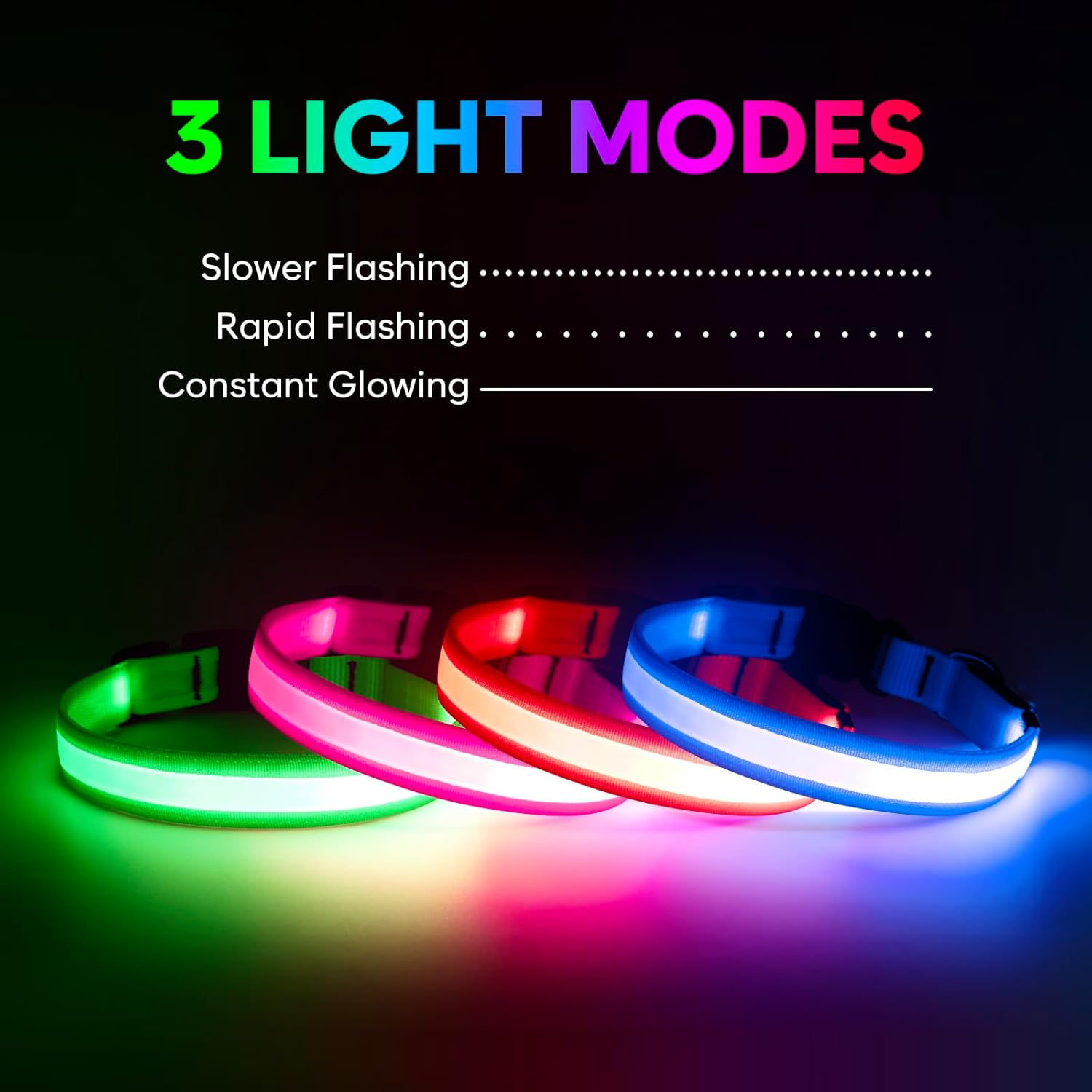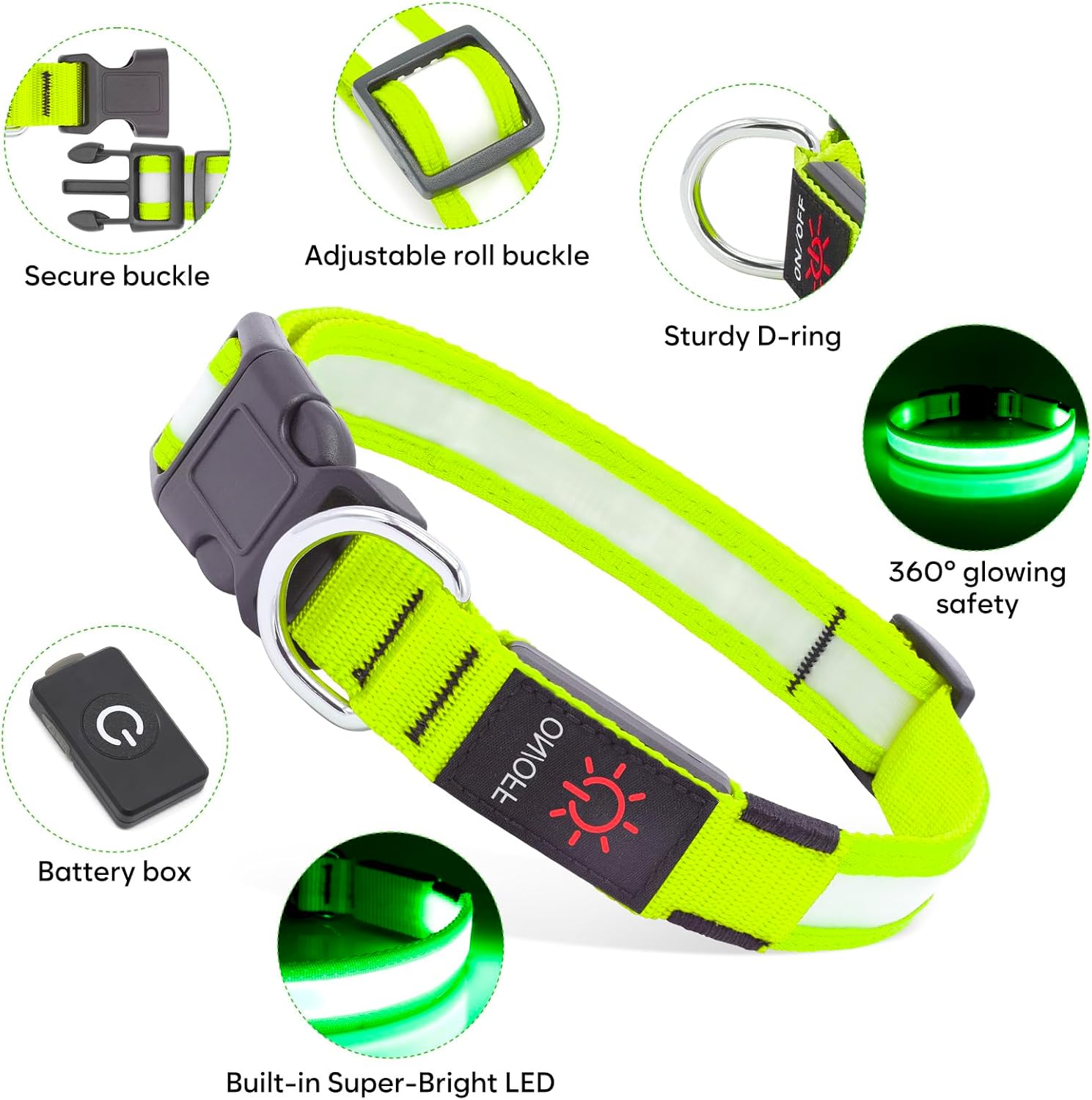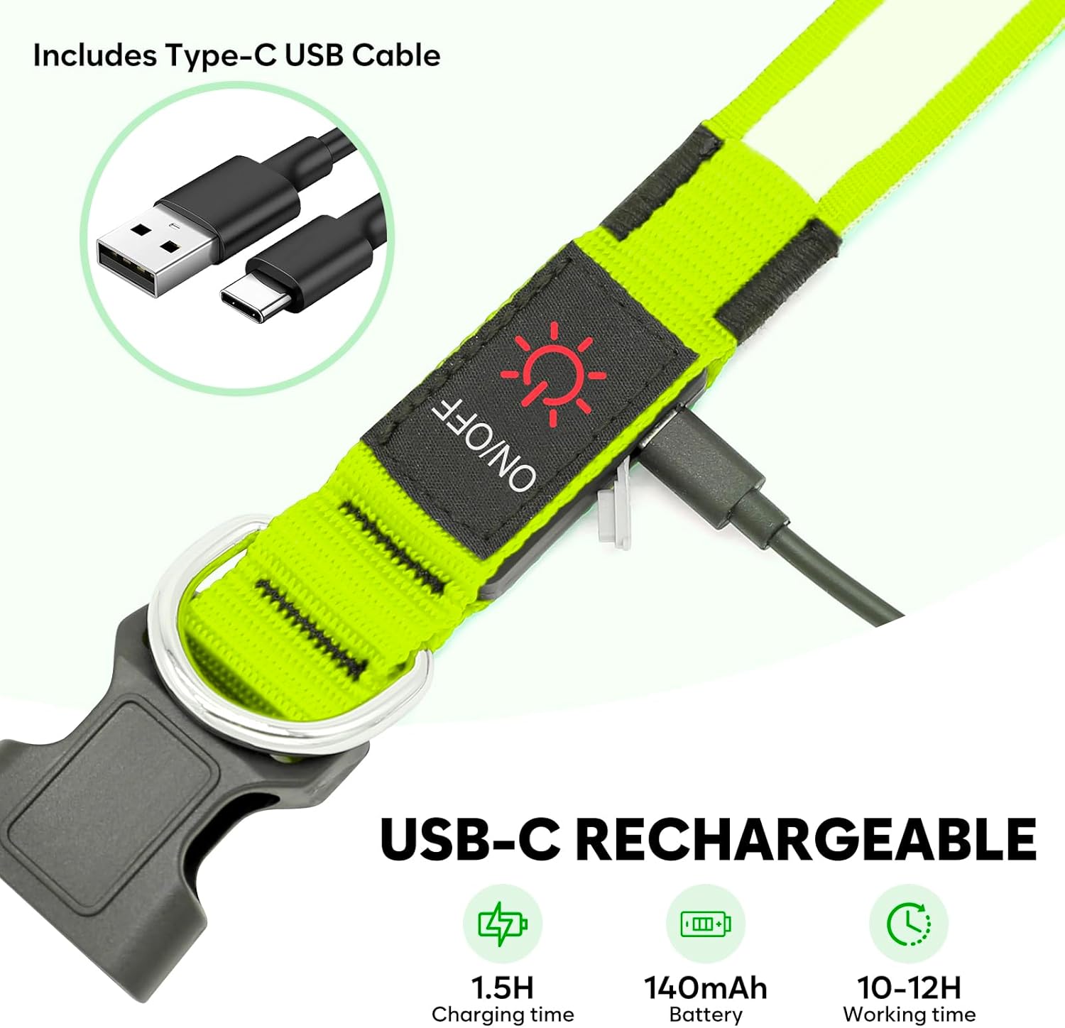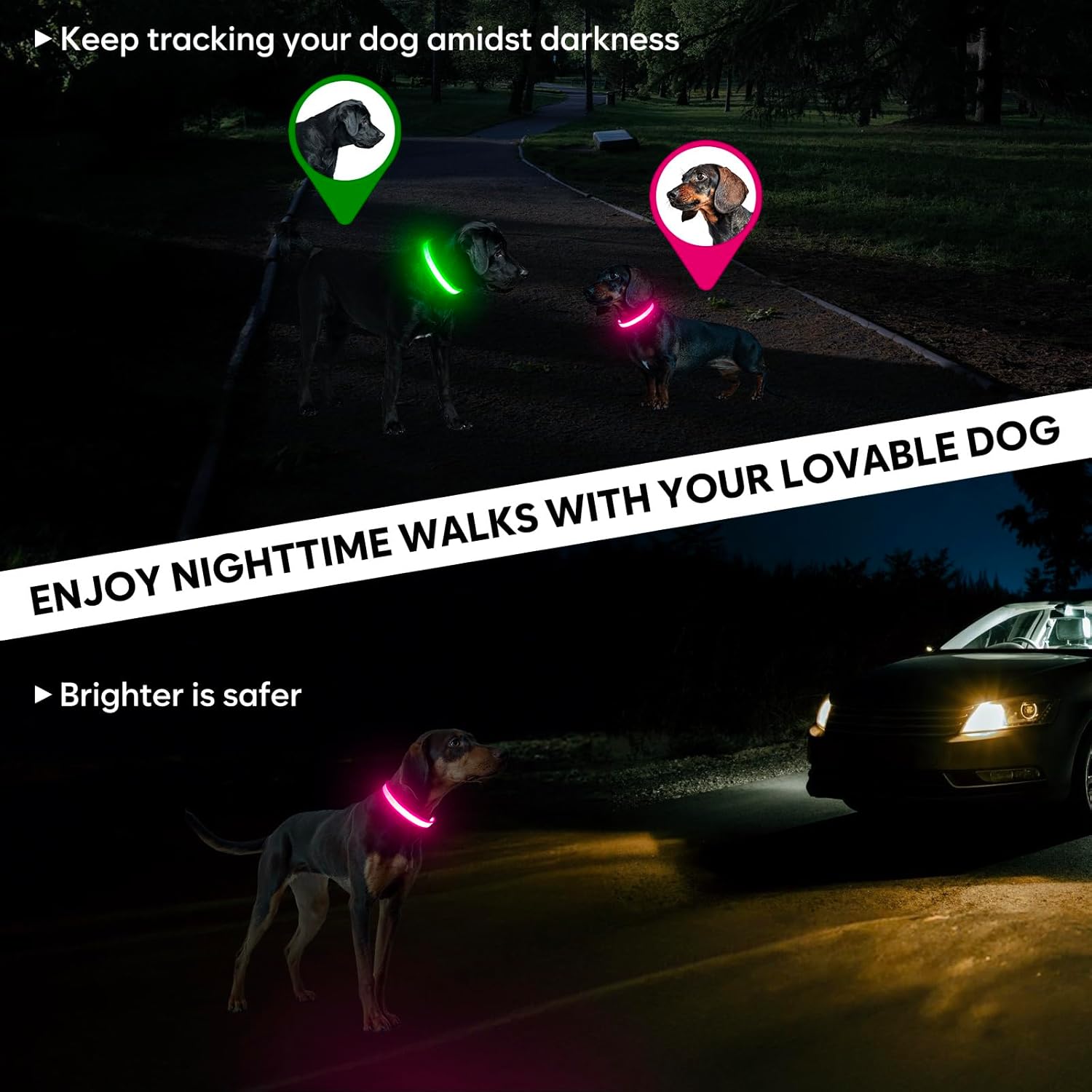 • 【Безопасен нашийник за куче】Този светещ нашийник за кучета с ярки LED светлини осигурява максимална видимост в тъмното. Защитете кучето си от коли, велосипеди или бегачи. Осветеният нашийник за кучета е супер ярък в тъмното, така че винаги можете да държите под око своя четириног приятел – идеален за нощни разходки или къмпингуване.