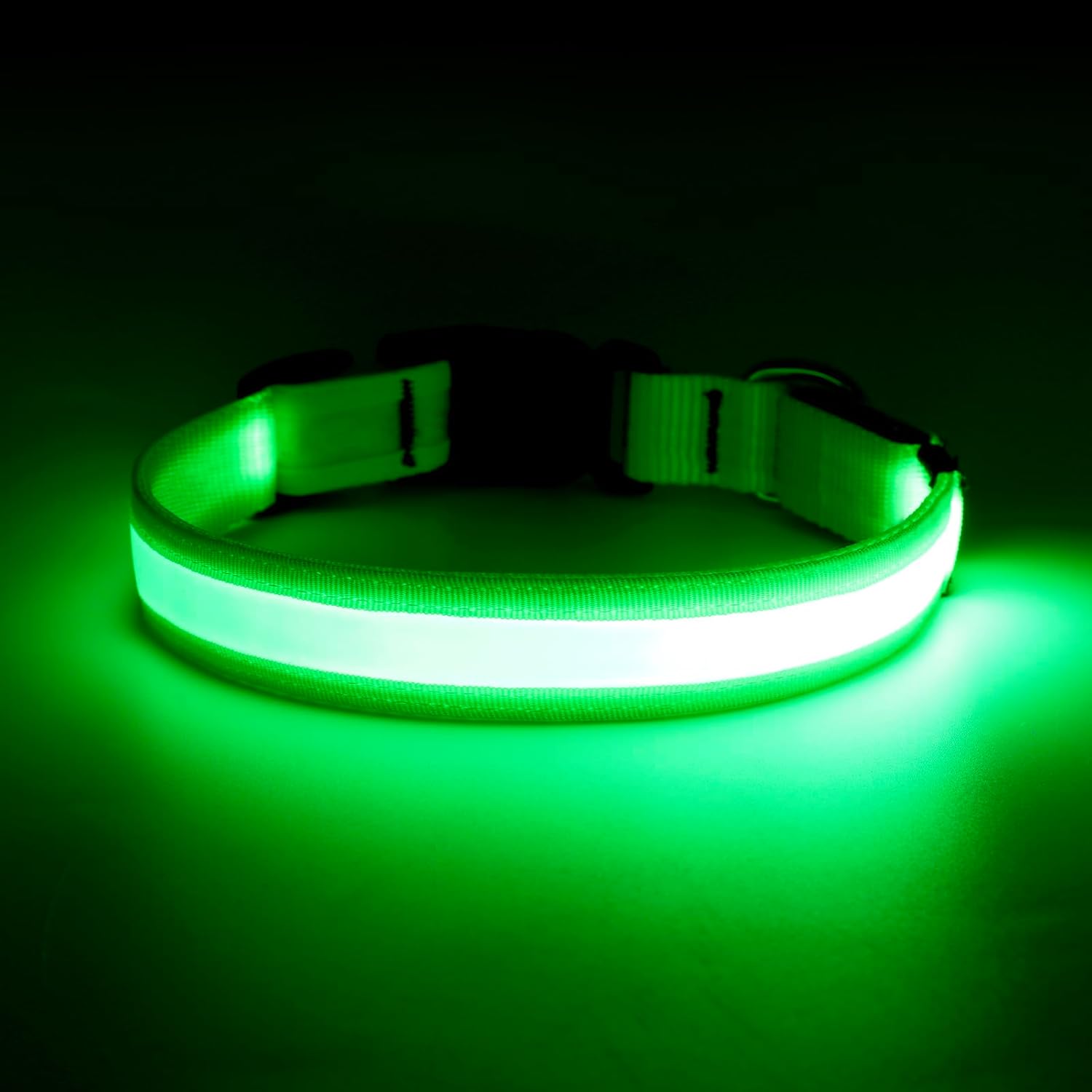 BiPawTi LED светеща каишка за кучета, презареждаща се светеща каишка за кучета с 3 режима на осветление за средни кучета, светеща каишка за нощни разходки/къмпинг - зелена, M