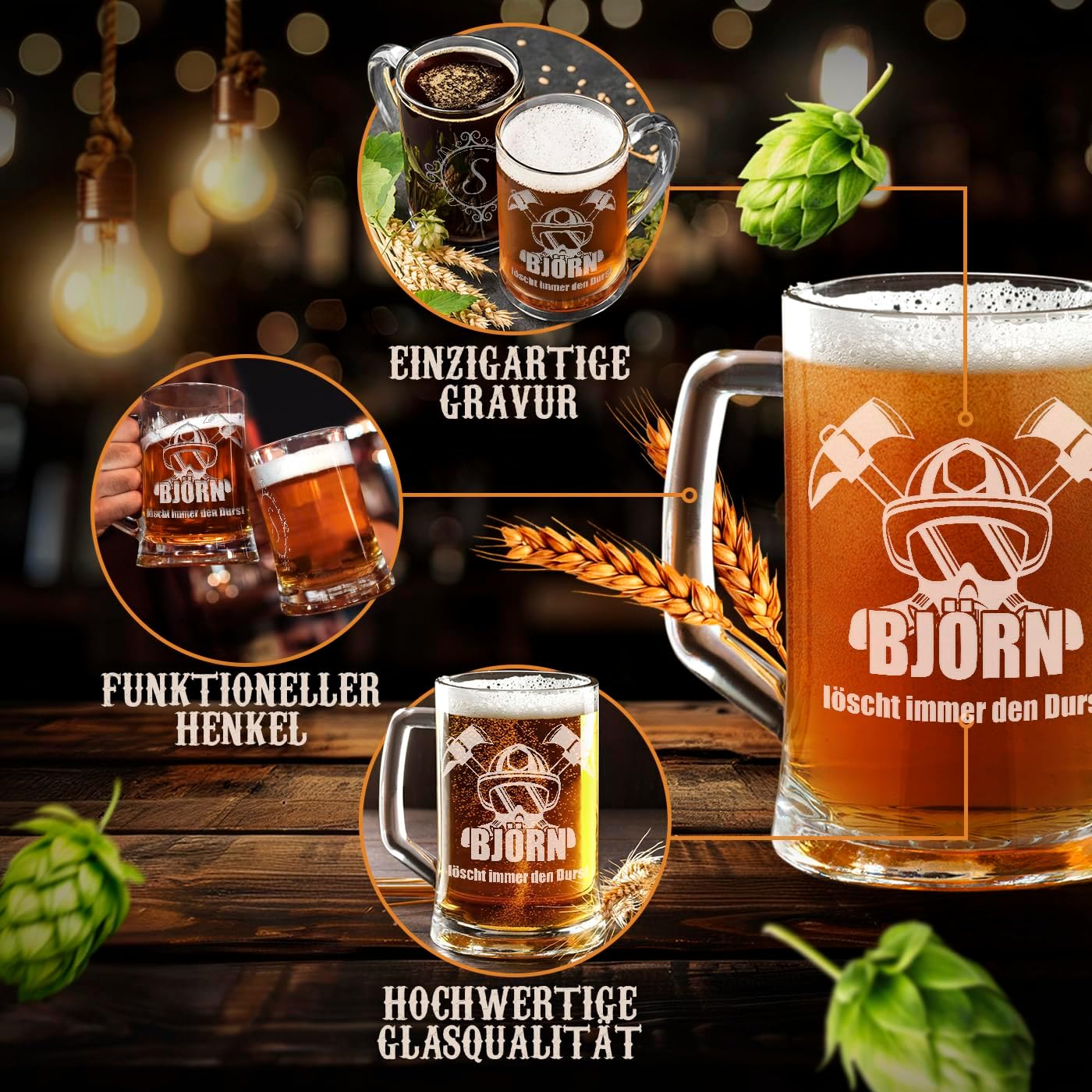 • Халба за бира: Тази халба за бира от 500 мл предлага перфектния обем за освежаваща бира. Тя е идеалната идея за персонализиран подарък за мъже, рождени дни или като подарък за жени.