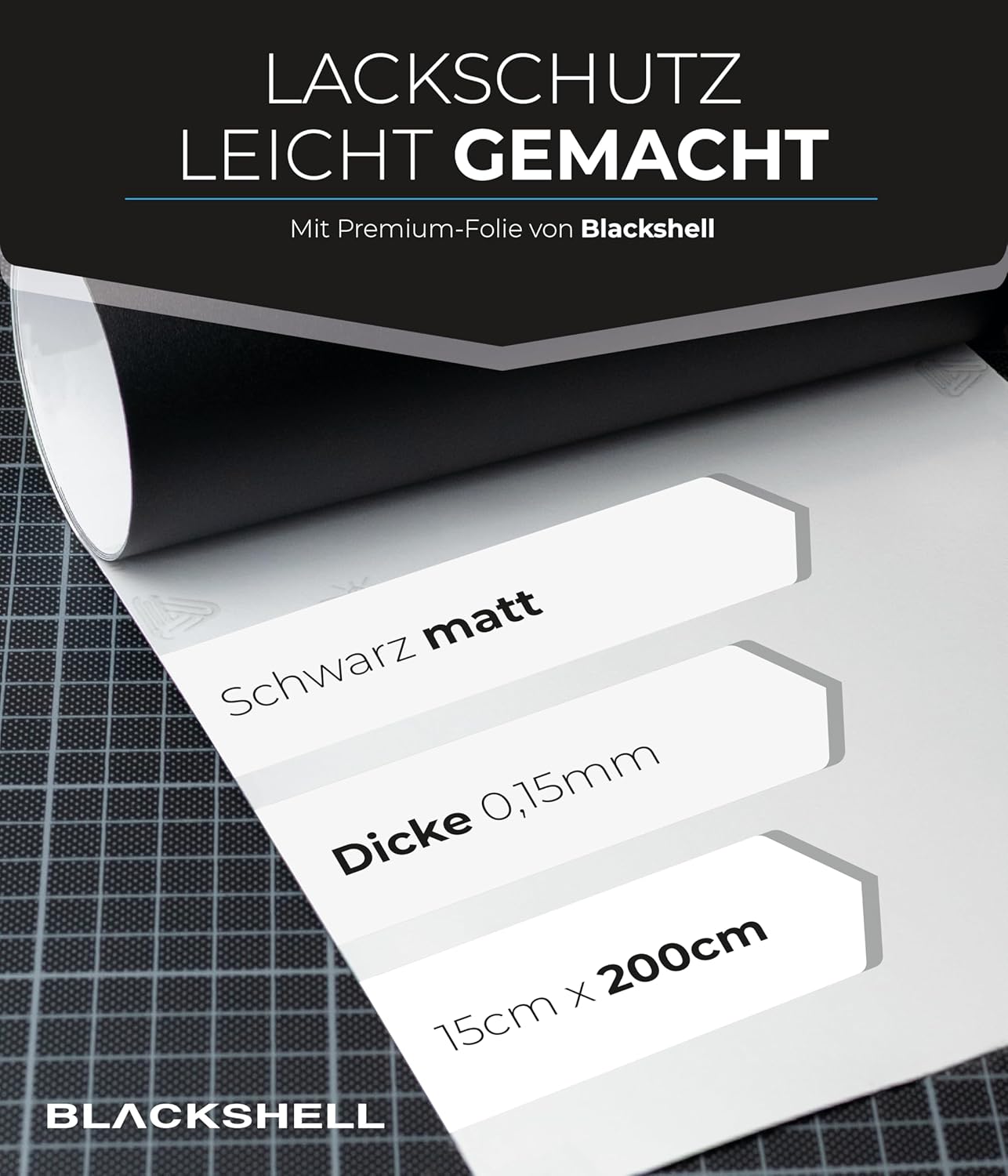 Blackshell® Универсално фолио за защита на боя, матово черно, 15 см x 200 см, самозалепващо се фолио за автомобили, мотоциклети, велосипеди – универсална употреба върху всички гладки повърхности
