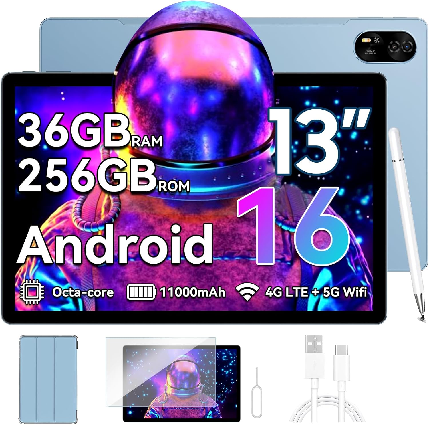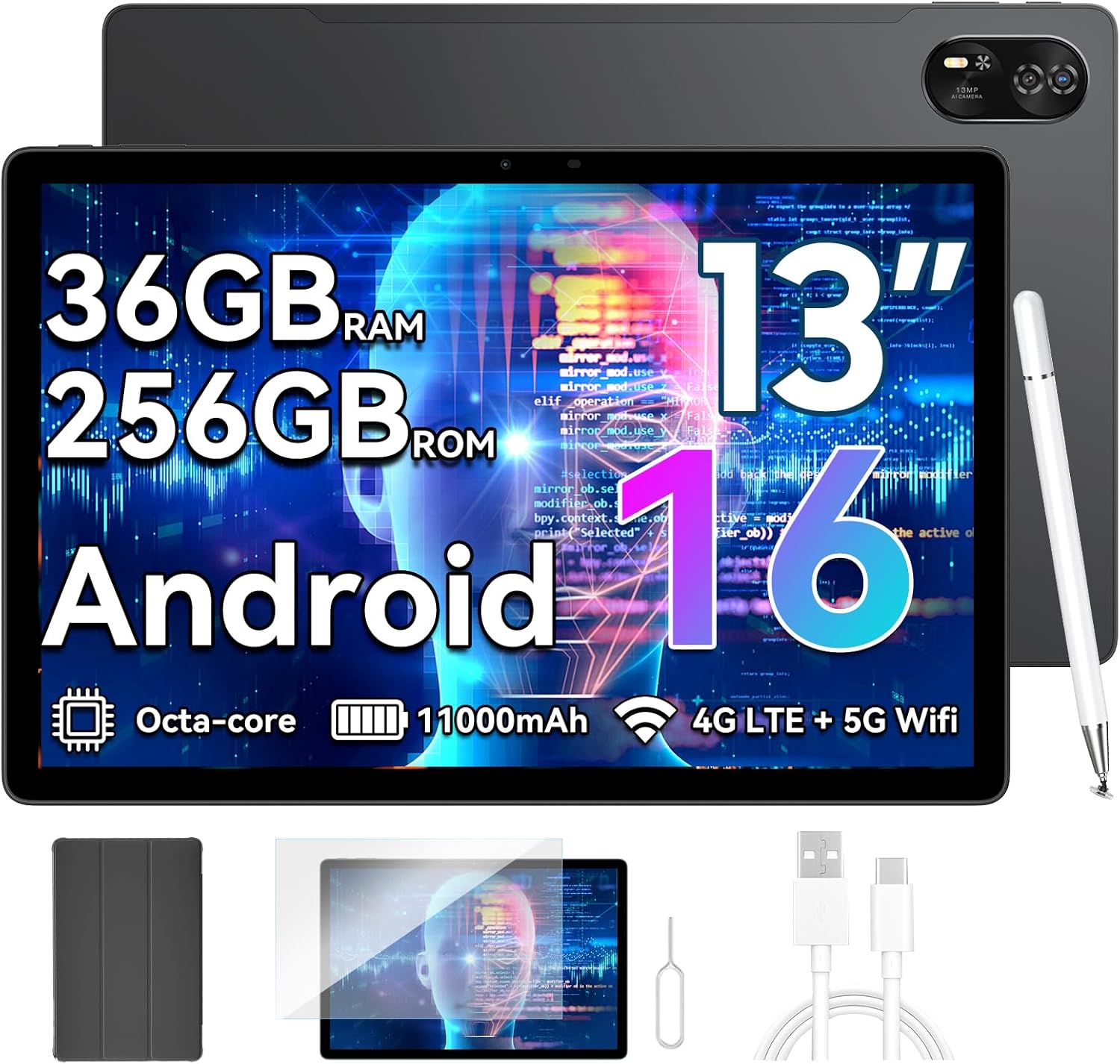 • 【36GB RAM + 256GB ROM】Вашият перфектен партньор за работа, забавление и творчески проекти. С мощен осемядрен процесор T620, 36GB RAM (12GB RAM + 24GB разширяема) и 256GB вътрешна памет, таблетът с Android 16 предлага изключителна производителност и много място за приложения, игри и файлове като Netflix, YouTube, Prime Video и Hulu.