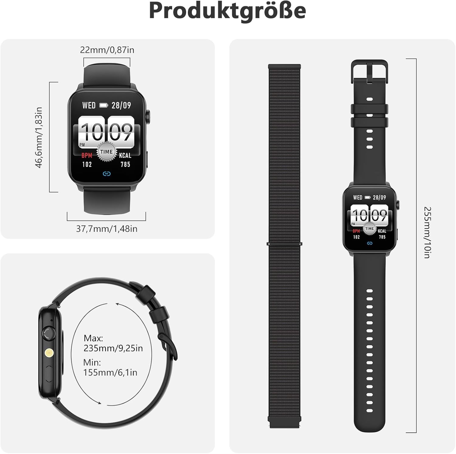 Blackview Smart Watch Мъже/Жени Bluetooth разговори/LED светлини/2 гривни (силикон/найлон) Спортен часовник с пулс, сън, стъпки, калории, километри, 350mAh (6+ дни), фитнес часовник за Android и iOS