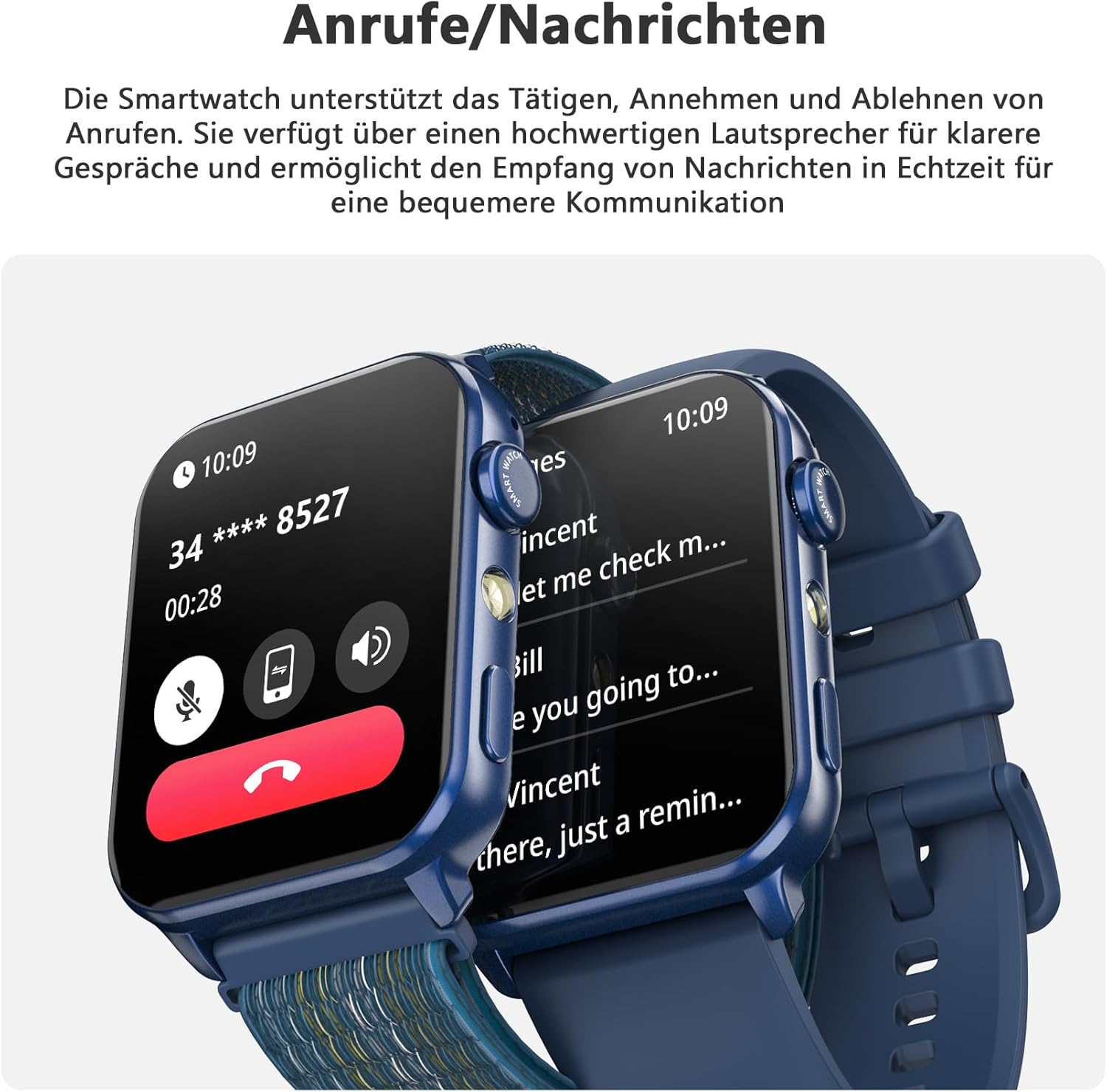 • Безпроблемна комуникация Bluetooth разговори: свържете часовника с приложението на вашия смартфон чрез Bluetooth, за да отговаряте или осъществявате повиквания директно. Вграденият високоговорител и микрофон с шумопотискане (намаляване на шума) осигуряват ясни разговори, дори в шумна среда (напр. на улицата, в офиса). Известия: Ако получите SMS, съобщение от WhatsApp, имейл или съобщение от социални мрежи (напр. Facebook, Instagram), часовникът го показва веднага - с вибрация.