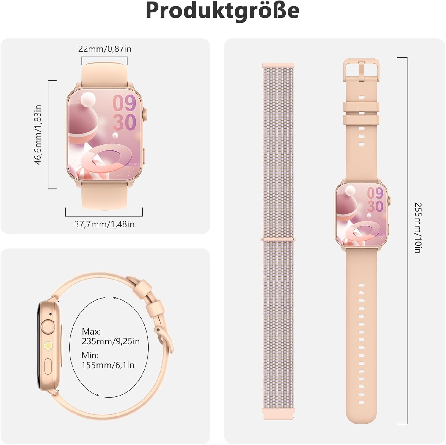 Blackview Smart Watch, Смарт часовник за жени Bluetooth разговори/LED светлини/2 гривни (силикон/найлон) спортен часовник с пулс сън SpO2 крачки калории километри 350mAh (6+ дни) фитнес часовник за Android iOS