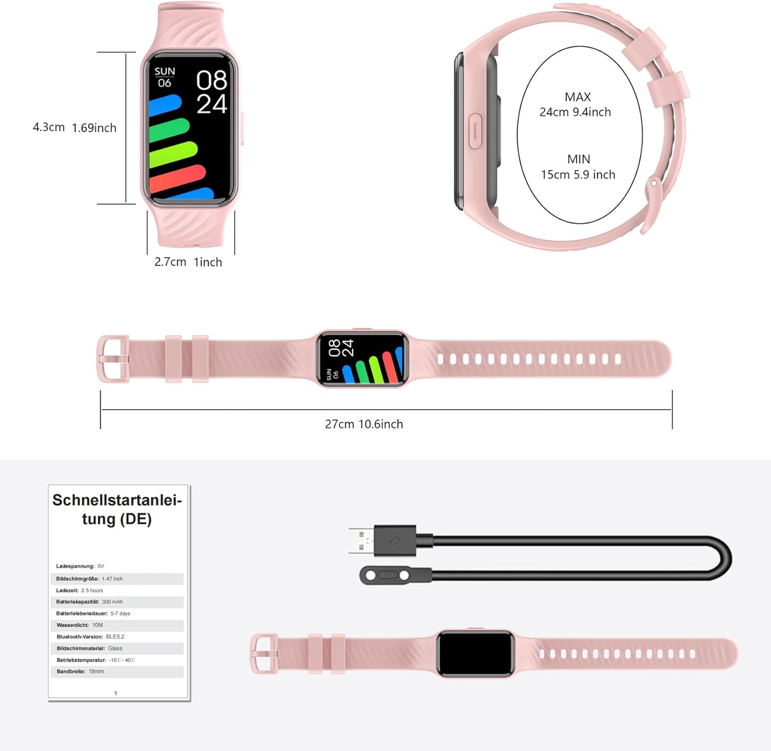 Blackview Smartwatch за жени и мъже, фитнес часовник, 1.47-инчов цветен дисплей, фитнес тракер с крачкомер, монитор за сън, пулсомер, спортен часовник с IP67 водоустойчив смарт часовник за Android и iOS (2 гривни)