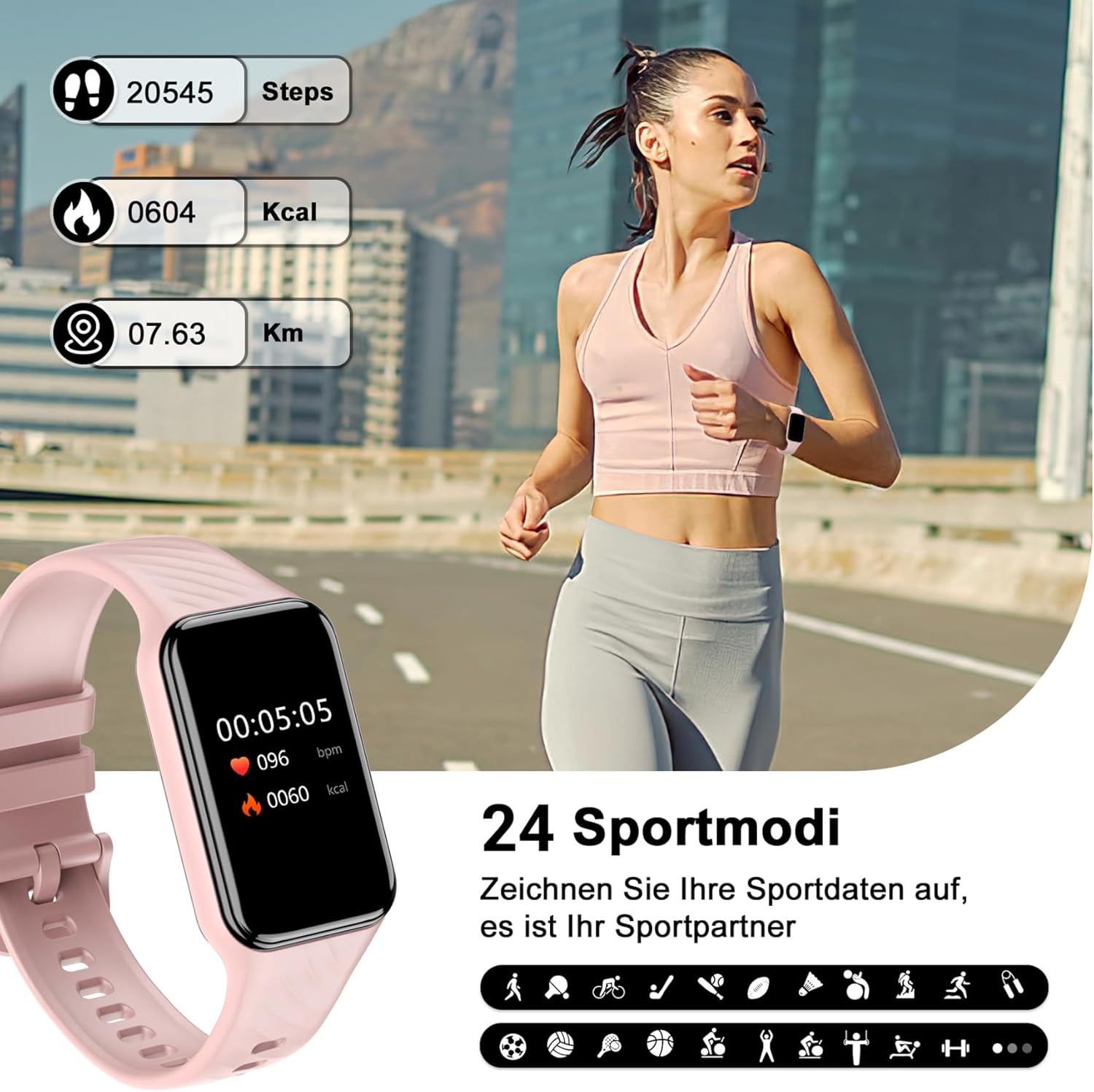 • Разнообразни спортни режими: този фитнес часовник поддържа 24 спортни режима, може да бъде водоустойчив доживот и да отговори на вашите различни спортни нужди. Изберете подходящия режим според вашата спортна сцена (колоездене, футбол, бадминтон, алпинизъм, танци, йога и др.). Освен това часовникът поддържа записване на ежедневните ви стъпки, изгорени калории и разстояние. Можете да анализирате фитнес данните на часовника, за да постигнете по-добри резултати при тренировки.