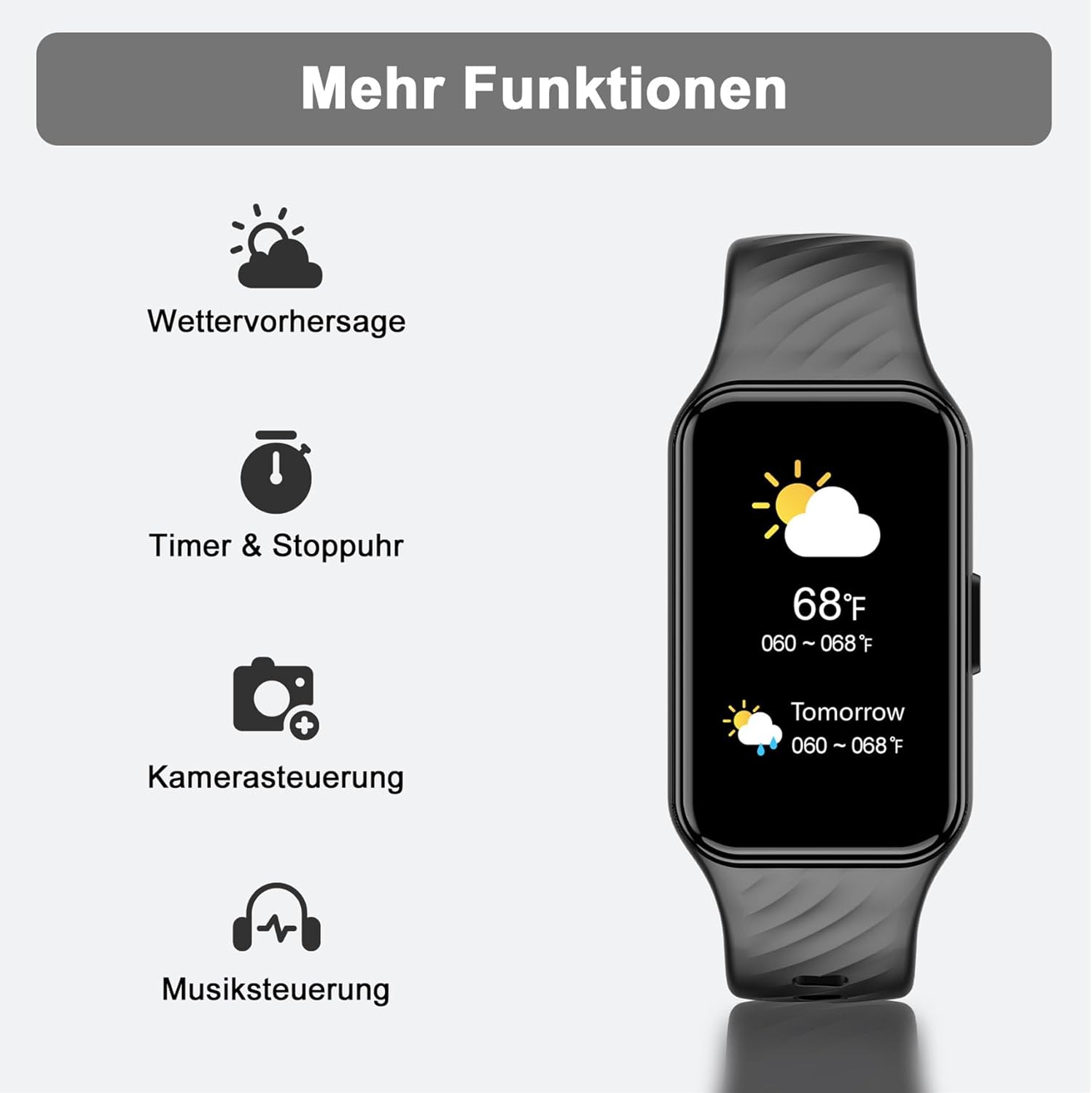 • Изживейте комфортен интелигентен живот: Изтеглете приложението "Gloryfit", за да отключите други полезни функции за вашия смарт часовник: напомняне за съобщения (SMS, WhatsApp, Instagram, Facebook и др.), напомняне за обаждания, управление на музика, управление на камерата, прогноза за времето, будилник, напомняне за заседнал начин на живот и др., за да ви осигурим по-интелигентно изживяване.