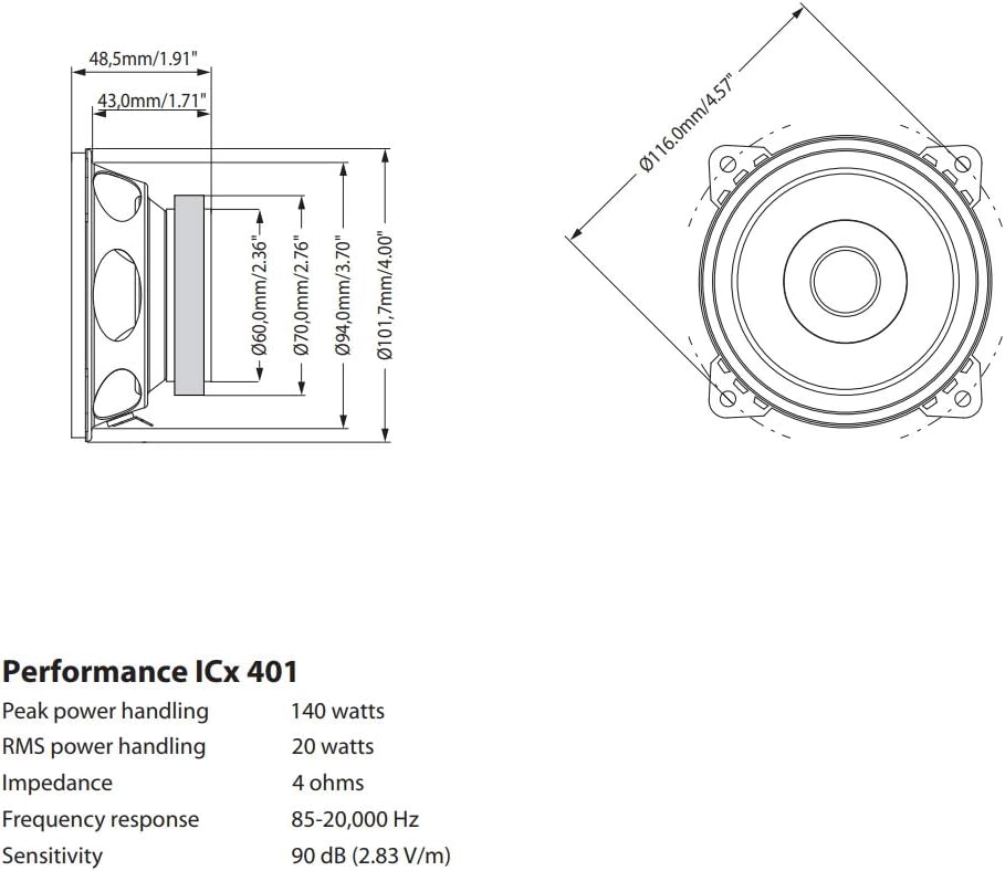 Двойни конусовидни високоговорители. 4″/100 мм, максимална мощност 140 вата