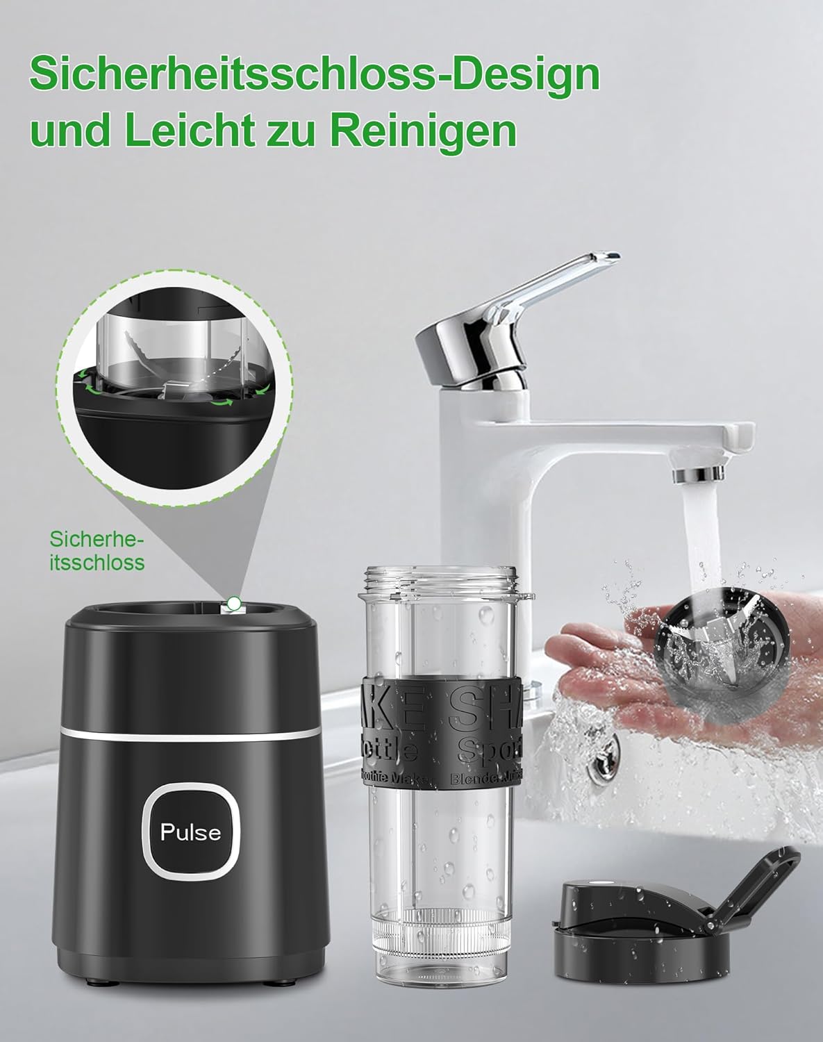 • Леки и преносими: капакът на чашата има практична сгъваема кука. Смути мейкърът се предлага с две преносими чаши от 20 унции (560 мл), оборудвани с капак, предпазващ от протичане. Тези чаши се побират лесно в джобовете и са идеалният спътник за фитнес, офис, пътуване до работа, училище, пътуване или къмпинг.