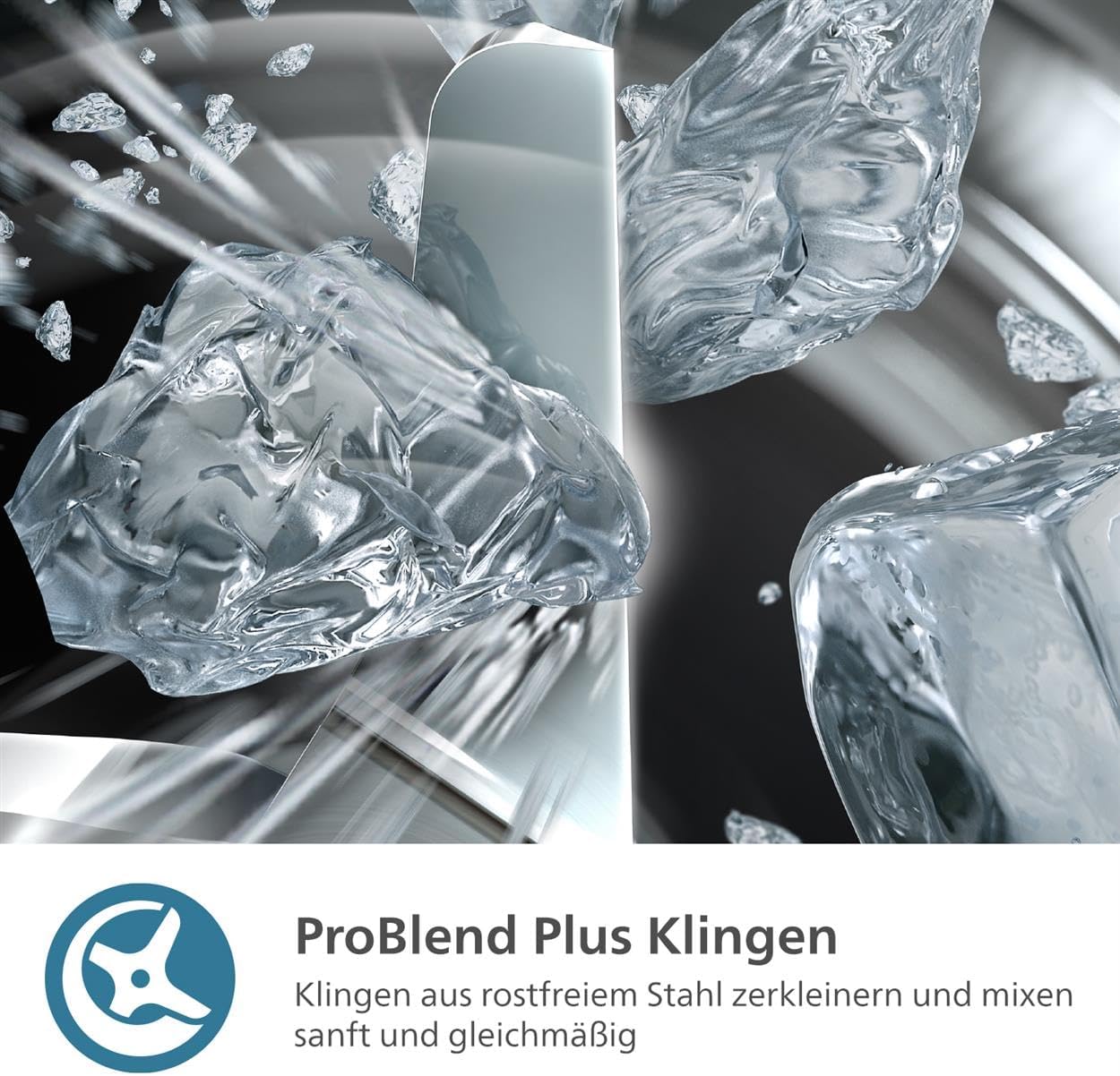 • Технология ProBlend Plus: 1000-ватовият мотор ProBlend Plus без усилие трансформира твърдите съставки в копринено меки текстури, с ножове ProBlend Plus и оребрен контейнер за оптимална циркулация