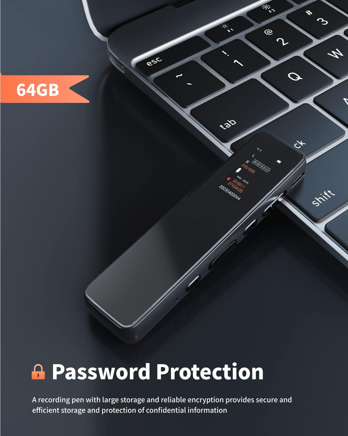 The included 64 GB TF card can store up to 268 hours of recording files (512 kbps). The memory supports up to 128 GB, so you never have to worry about running out of capacity.