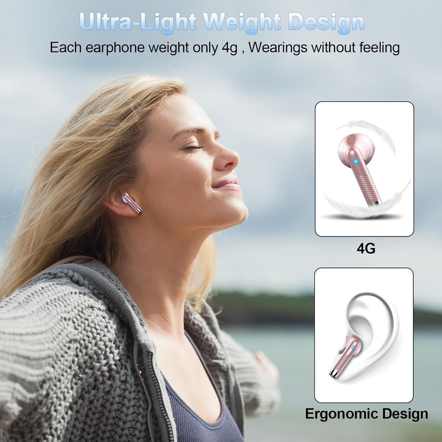 • Леки и практични: С ергономичен дизайн за поставяне в ушите и тегло от само 3,2 грама на всяка Bluetooth слушалка, ще се чувствате комфортно, дори ако ги носите на ушите си дълго време. Безжичните слушалки се включват автоматично и се свързват с телефона ви, когато се извадят от кутията за зареждане (необходима е само 1 секунда). Насладете се на удобството на тези истински безжични слушалки.