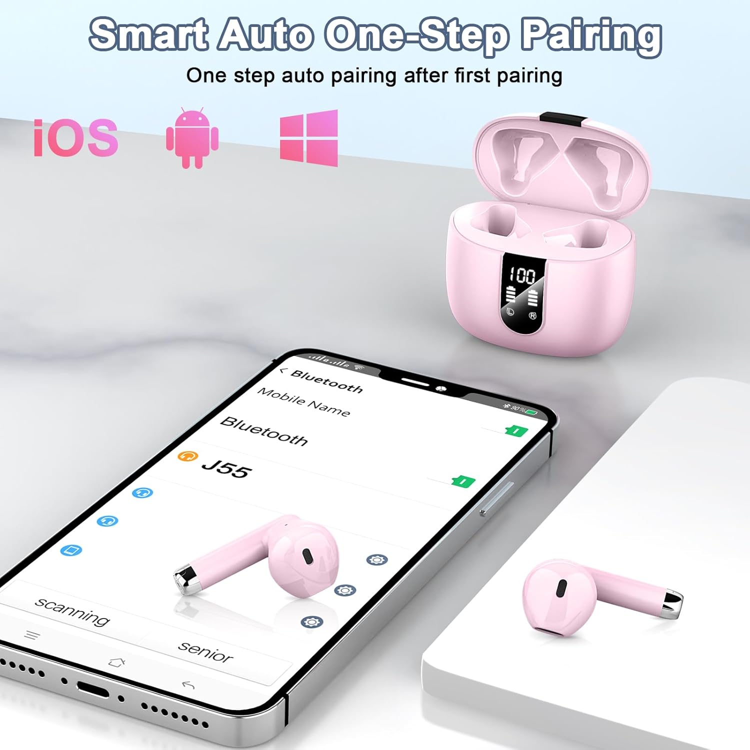 • Леки и практични: С ергономичен дизайн за поставяне в ушите и тегло от само 3,2 грама на всяка Bluetooth слушалка, ще се чувствате комфортно, дори ако ги носите на ушите си дълго време. Безжичните слушалки се включват автоматично и се свързват с телефона ви, когато се извадят от кутията за зареждане (необходима е само 1 секунда). Насладете се на удобството на тези истински безжични слушалки.