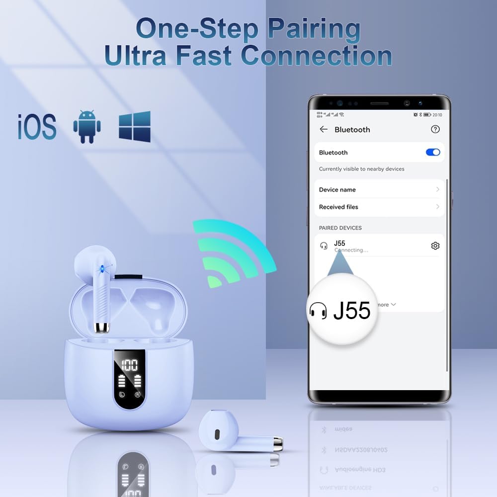 • Леки и практични: С ергономичен дизайн за поставяне в ушите и тегло от само 3,2 грама на всяка Bluetooth слушалка, ще се чувствате комфортно, дори ако ги носите на ушите си дълго време. Безжичните слушалки се включват автоматично и се свързват с телефона ви, когато се извадят от кутията за зареждане (необходима е само 1 секунда). Насладете се на удобството на тези истински безжични слушалки.