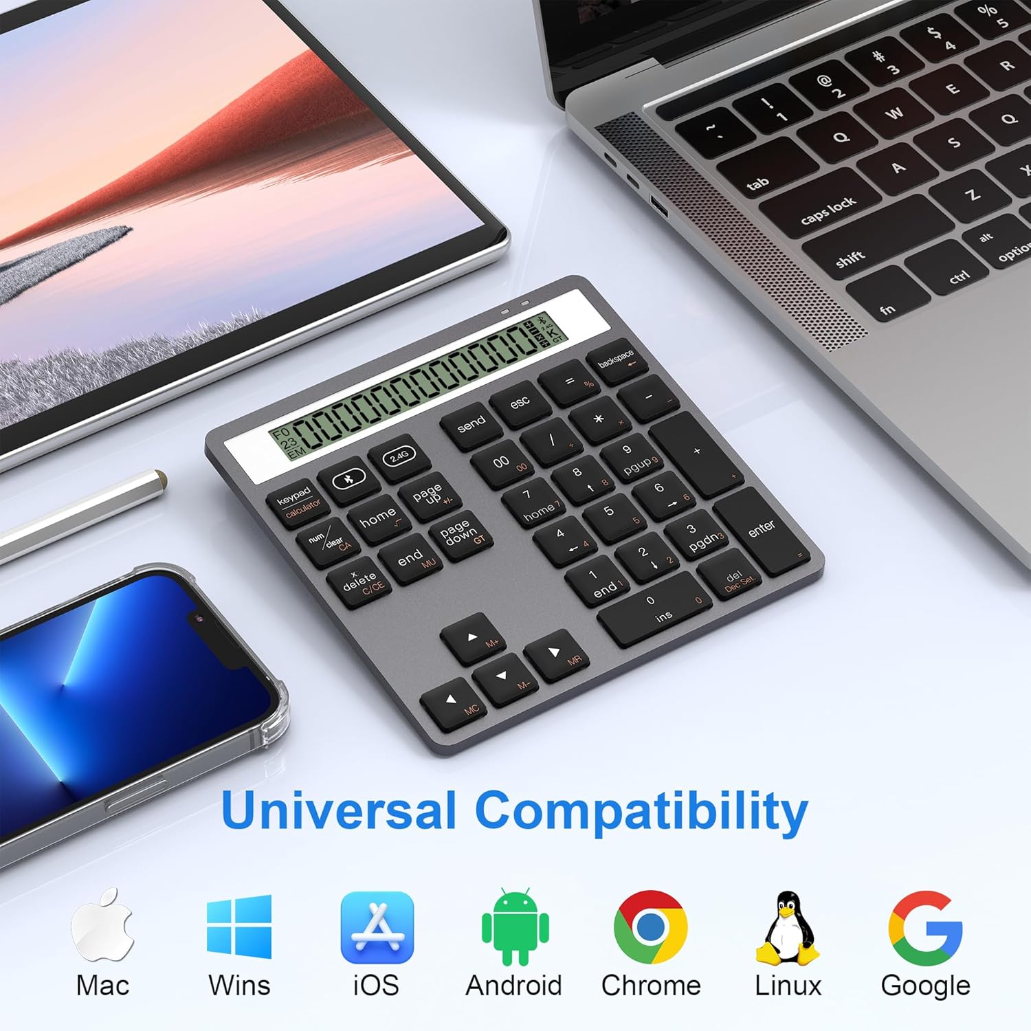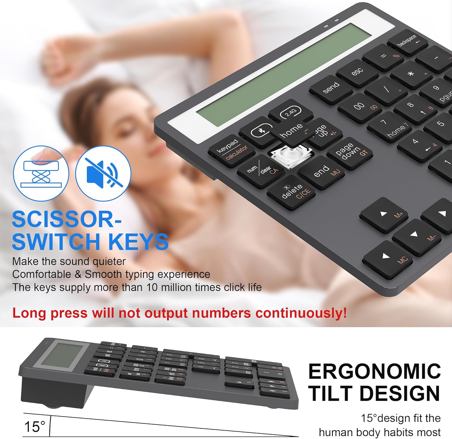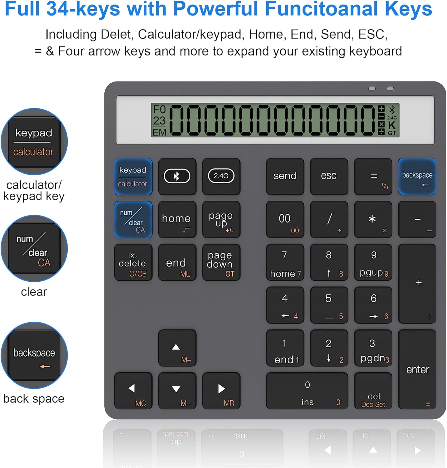 Bluetooth/2.4G цифрова клавиатура, 34-инчов бутон за превключване с ножица, функции и дисплей на калкулатора, необходима батерия: 2 x AAA батерии (не са включени)